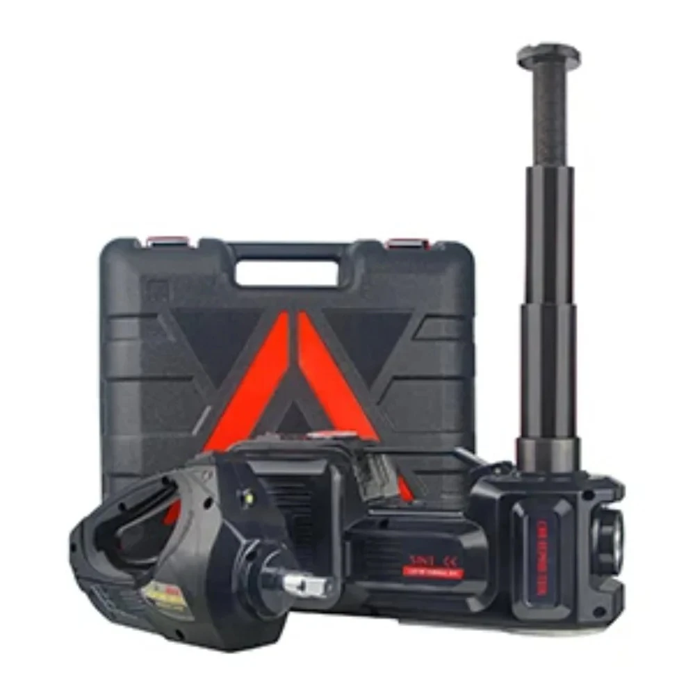 5T electric hydraulic jack can be used with 12V car power socket. It can lift the car in less than 1 minute; the kit includes an impact wrench for quick screw removal and tire change; the jack includes an air pump to inflate the tire. The kit's simple and compact design is easy to pack with the included plastic box for easy transportation and storage. Jacks can meet a variety of needs, and together they form a practical tool for outdoor emergencies. The structure is safe and stable. The LED light on the jack can be used as a flashlight.