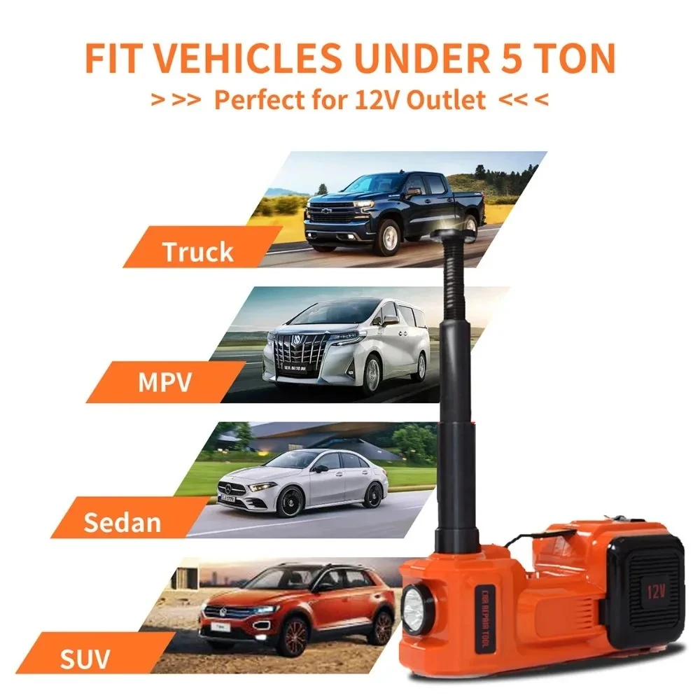 5Ton 3 in 1 Electric Hydraulic Car Jack with Impact Wrench &Tire Inflator Car Jacks Built-in LED light A01