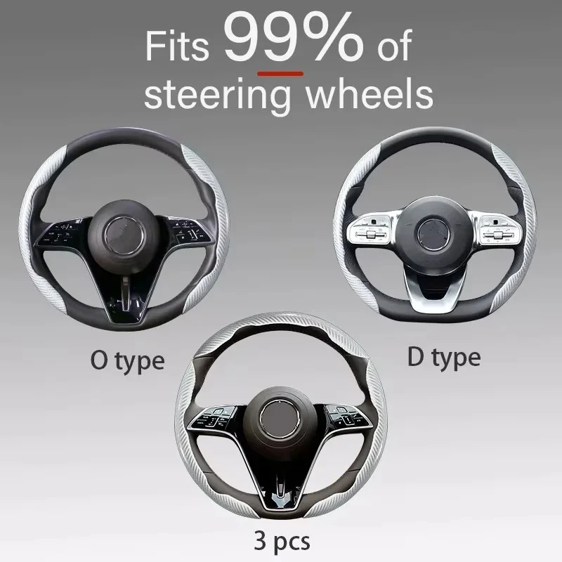 2/3PCS Laser Carbon Fiber Silicone Car Steering Wheel Cover 1K Micro Fiber Leather PVC Wheel Booster Cover Non-Slip Universal