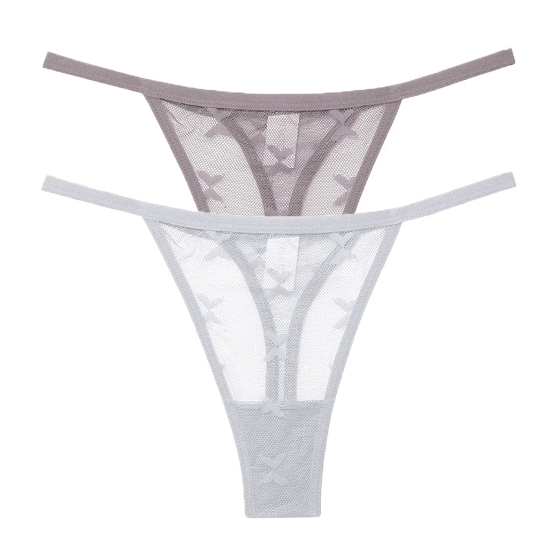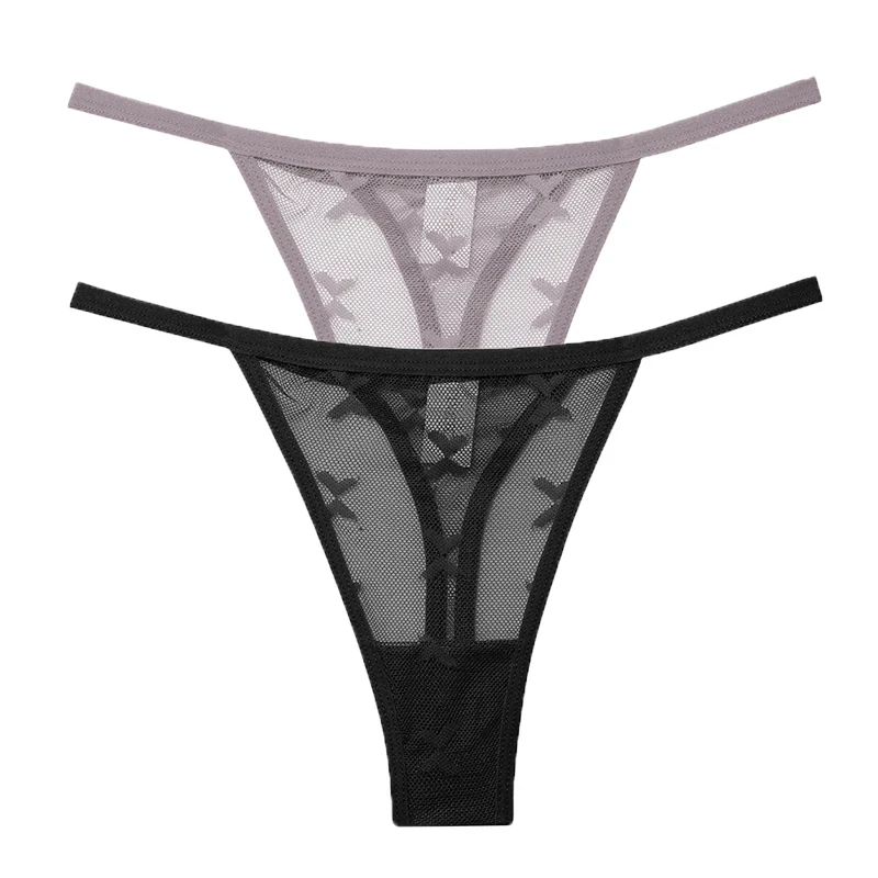 2PCS/Set Mesh Transparent Thong Women Panties Underwear Women Seamless G-String