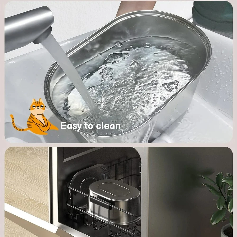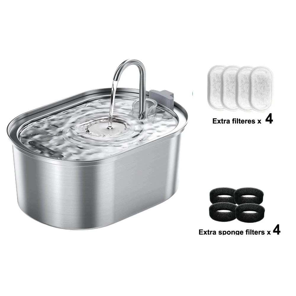 Specifications: Materials:stainless steel Color:Sliver Maximum capacity: 3.2L Applicable objects: all pets Cable:USB plug and adapters Features: 304 Stainless Steel: The cat water fountain is made of 304 stainless steel, and more durable and orrosion resistant. BPA free and dishwasher safe, easy to clean. Double filtration system: Equipped with activated carbon filter and pre filter sponge, the automatic cat and dog water fountain can provide your pet with pure drinking water and keep healthy. 3.2 L Large Capacity: The capacity of water fountain is 2.0L, and the high and low water level lines are marked in the container suitable for multi pet families. Ultra quiet: The 1.5W pump is super silent when running, keep it below 20db, No need to worry about interrupting you and your pet to rest. Encourage drinking: The dynamic water flow helps attract pets to drink. It takes only 2.5 minutes to install or disassemble the drinking fountain, .Easy to clean: The cat water fountain is made of high-quality PP, and it is easy to disassemble and clean; the transparent box allows you to observe the amount of filled water at any time. Details showing: |