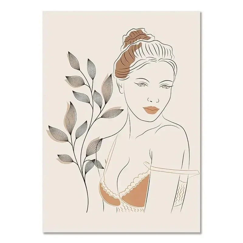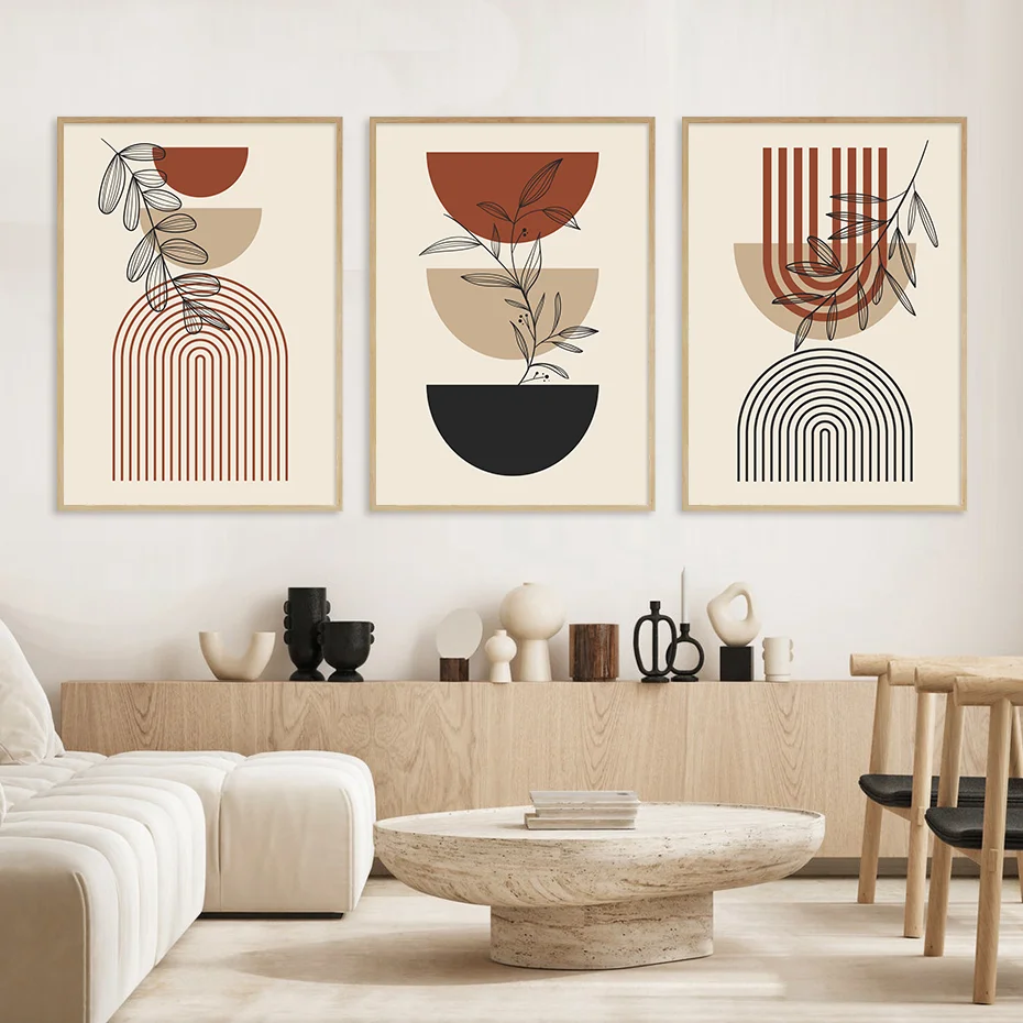 Bohemian Light Block Canvas Poster Vintage Minimalist Line Leaf Wall Art Prints For Modern Living Room & Scandinavian Home Decor
