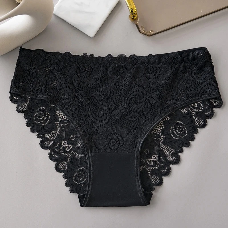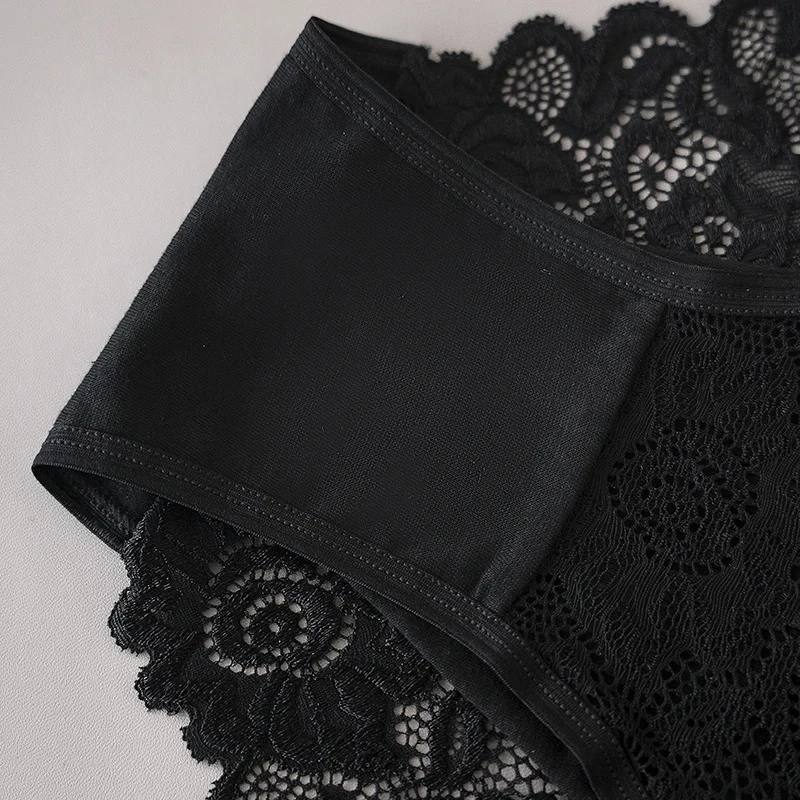 3PCS/Set White Black Green Solid Color Cotton Panties Hollow Out Lace Floral Embroidery Women Briefs