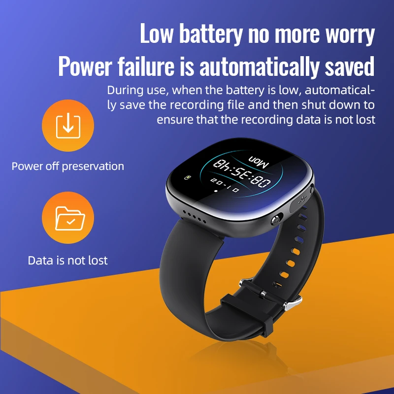 1. INDEPENDENT RECORDING BUTTON: The Recorder watch has an independent recording button design. When you are in an emergency, simply touch to complete the recording and save, making it easy to capture a wonderful moment.