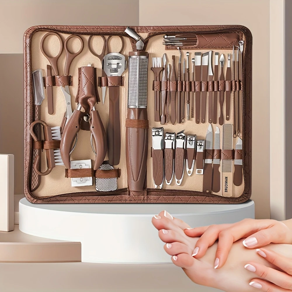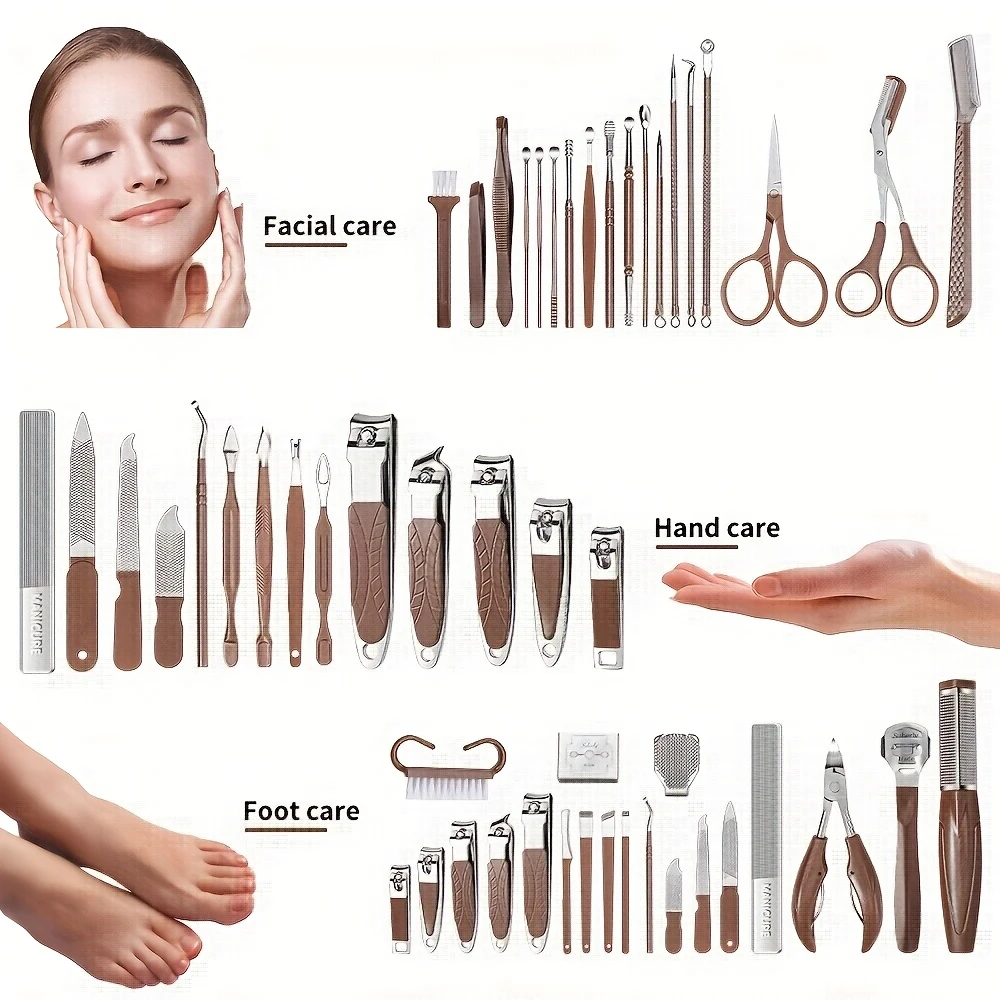 42pcs Set Brown Stainless Steel Nail Clipper Set Anti Splash Manicure Tools Home Portable Beauty Kit Foot Trimming Knife