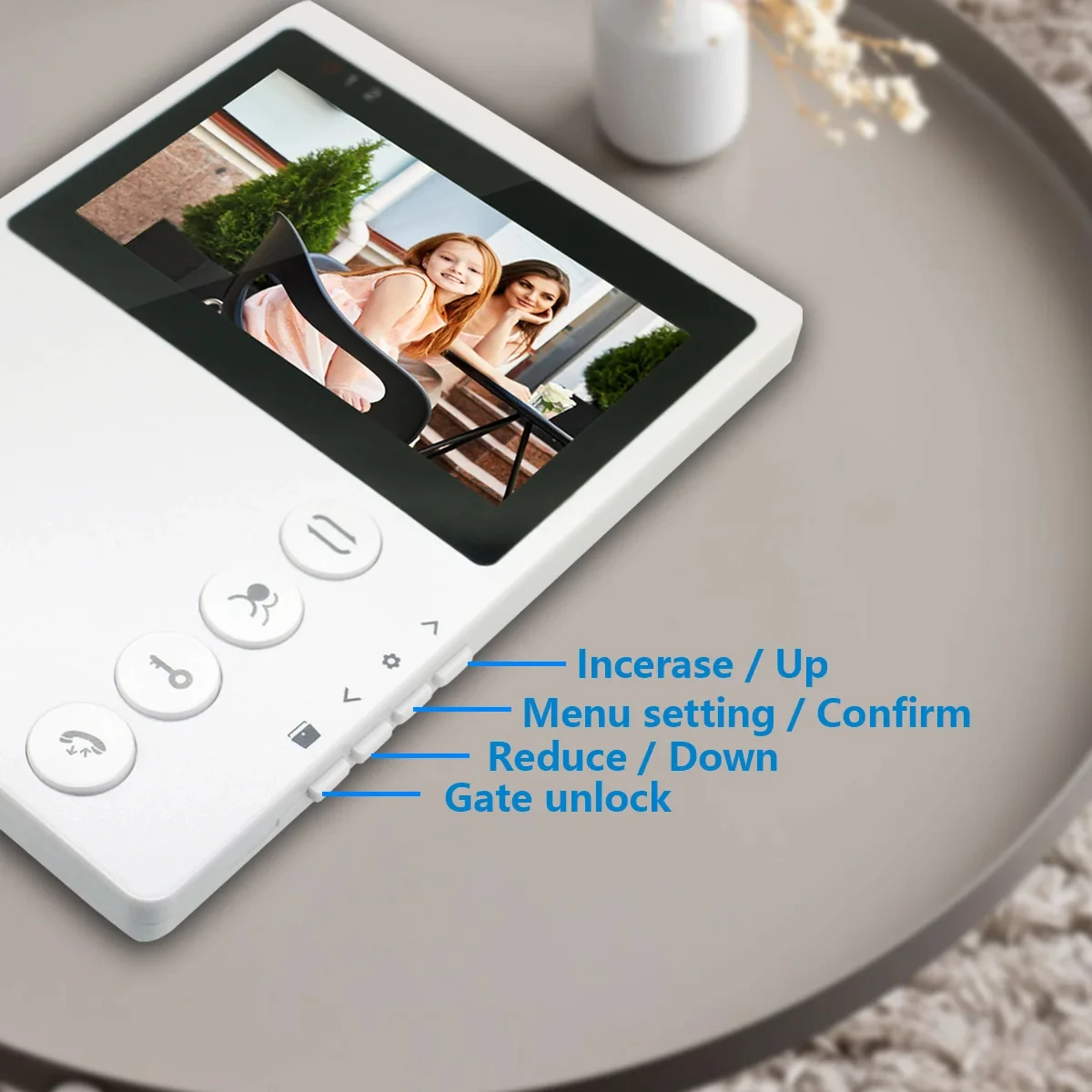Handsfree Dual-way Intercom and Indoor Monitoring When a visitor ring the bell, the monitor will be activated and show the image outside. Press the answer button, then you can talk to outside, press the answer button again to turn it off. One key unlock The indoor unit screen has an unlock function. You can use the indoor monitor to open the door. There is no need to open the door for visitors. Very convenient! Waterproof and dustproof The outdoor camera equipment with a weatherproof cover,can be used outside even in very bad weather. |
