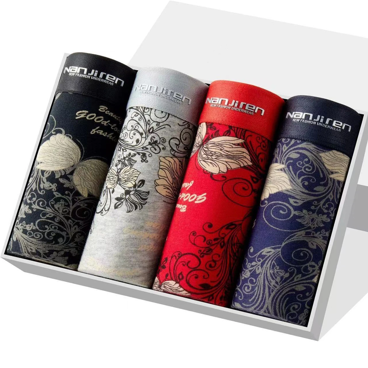 4Pcs Men's Boxer Shorts Cotton Underwear Sexy Panties Man Short Homme Underpants Male U Convex Lingerie