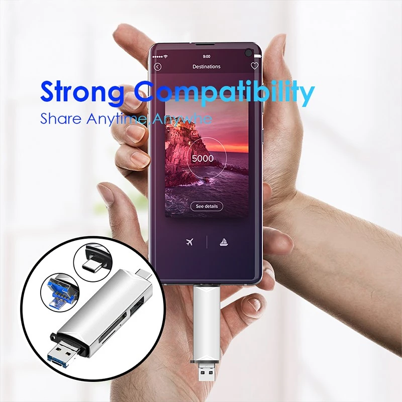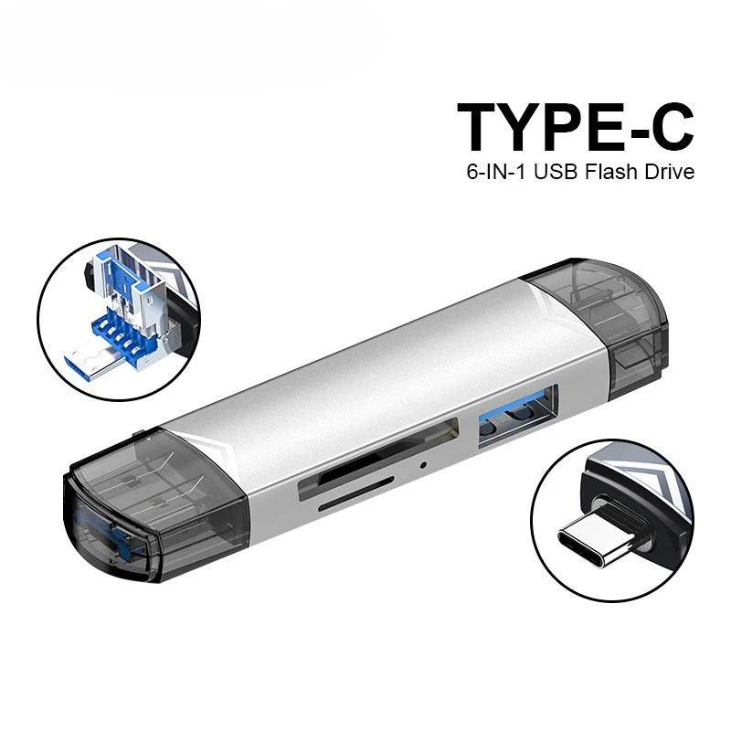 6 in 1 Card Reader USB3.0 to Type C Micro USB Universal OTG Adapter Multifunctional adapter SD TF High-speed transmission