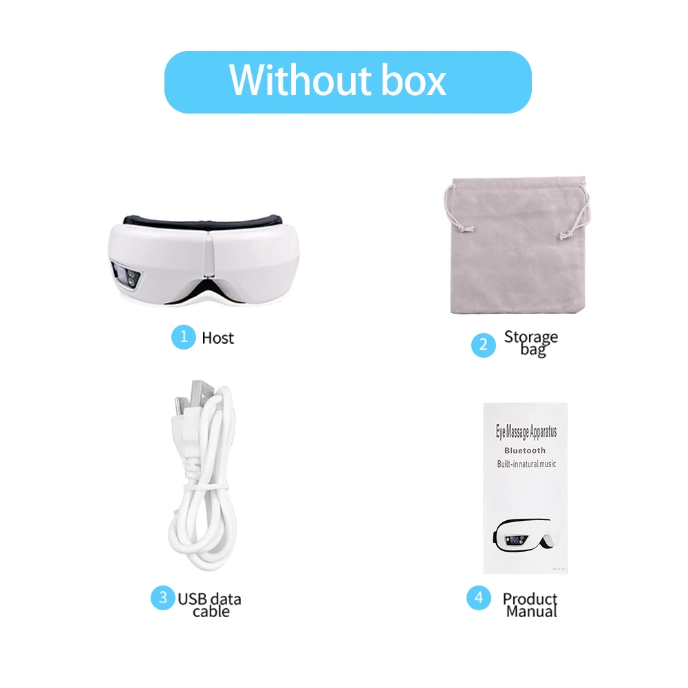 Eye Massager Smart Airbag Vibration Hot Compress Bluetooth Music Relieve Fatigue Eye Massage Glasses Eye Care Massager 1. It is recommended to adjust to an appropriate tightness during use (you can slowly adjust the tightness according to the experience during use), leaning against the sofa or chair for a better fit, more uniform force, better effect and better comfort. 2. It is recommended to use 1-2 times a day for 10-20 minutes each time. Remember to rest with eyes closed for 3-5 minutes after use, the eyes will be more comfortable. 3. Use after charging the product. 4. Product cleaning: Use a wet towel or 75% medical alcohol-soaked cotton ball to wipe the product mask and appearance. 5. Prohibition of access to fire sources, corrosive liquids and various adverse environments. People who are not recommended to use 1. Banned for pregnant women. 2. Myopia above 800 degrees, please use under the guidance of a doctor. 3. For patients with severe glaucoma and cataract, an eye massager is not recommended for children under 7 years. 4. Prohibition of the use of stroke sequelae. 5. Injuries around the eyes, patients who have just completed surgery (double eyelids) are forbidden to use during the rehabilitation period. 6. People who have performed major eye surgery, such as glaucoma, cataract, retinal detachment, etc. are forbidden to use it. Please consult the doctor for advice after one year of myopia surgery. 7. People with severe inflammation of the eyes are forbidden to use. ![]()