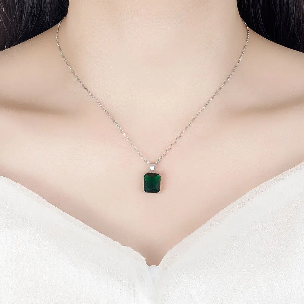 925 Sterling Silver Ring Earrings Necklace For Women Rectangle Geometry Zircon W