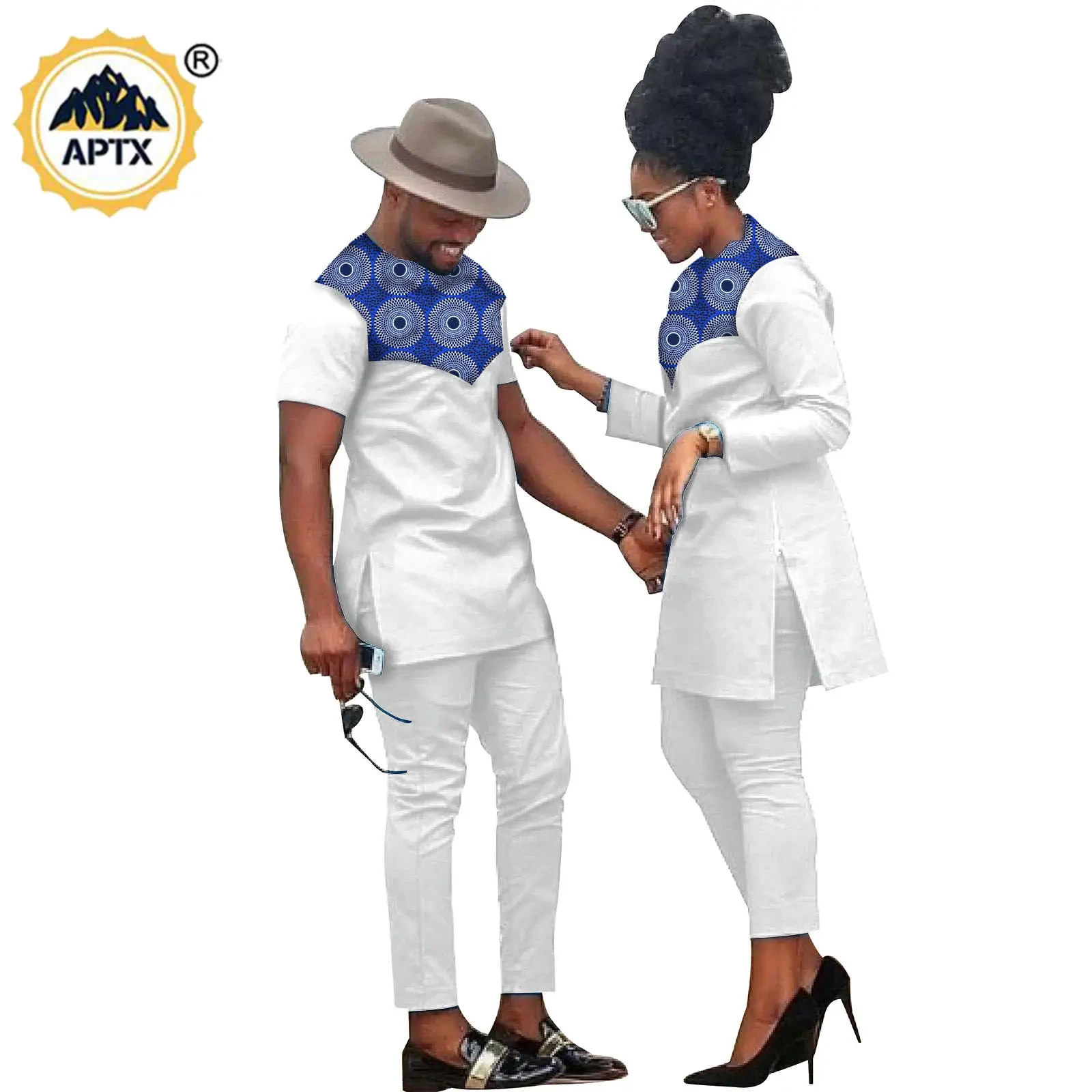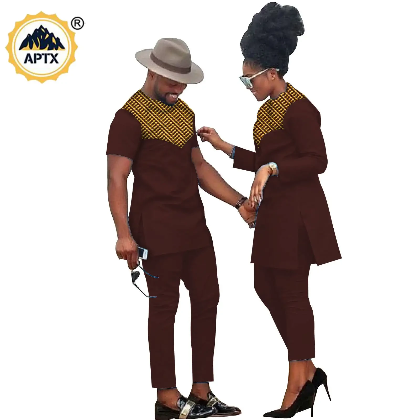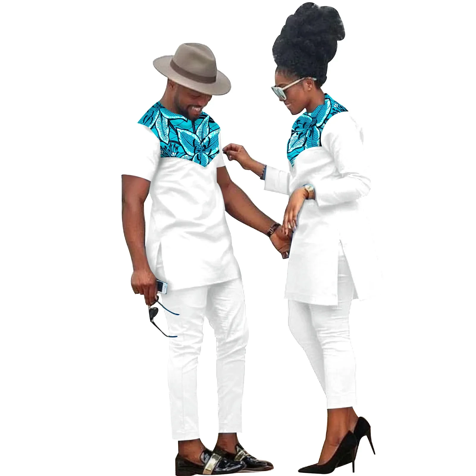 African Clothes for Couples Bazin Riche African Women Ankara Print Clothes Match Men Outfits Handmade Top and Pants Sets S20C001