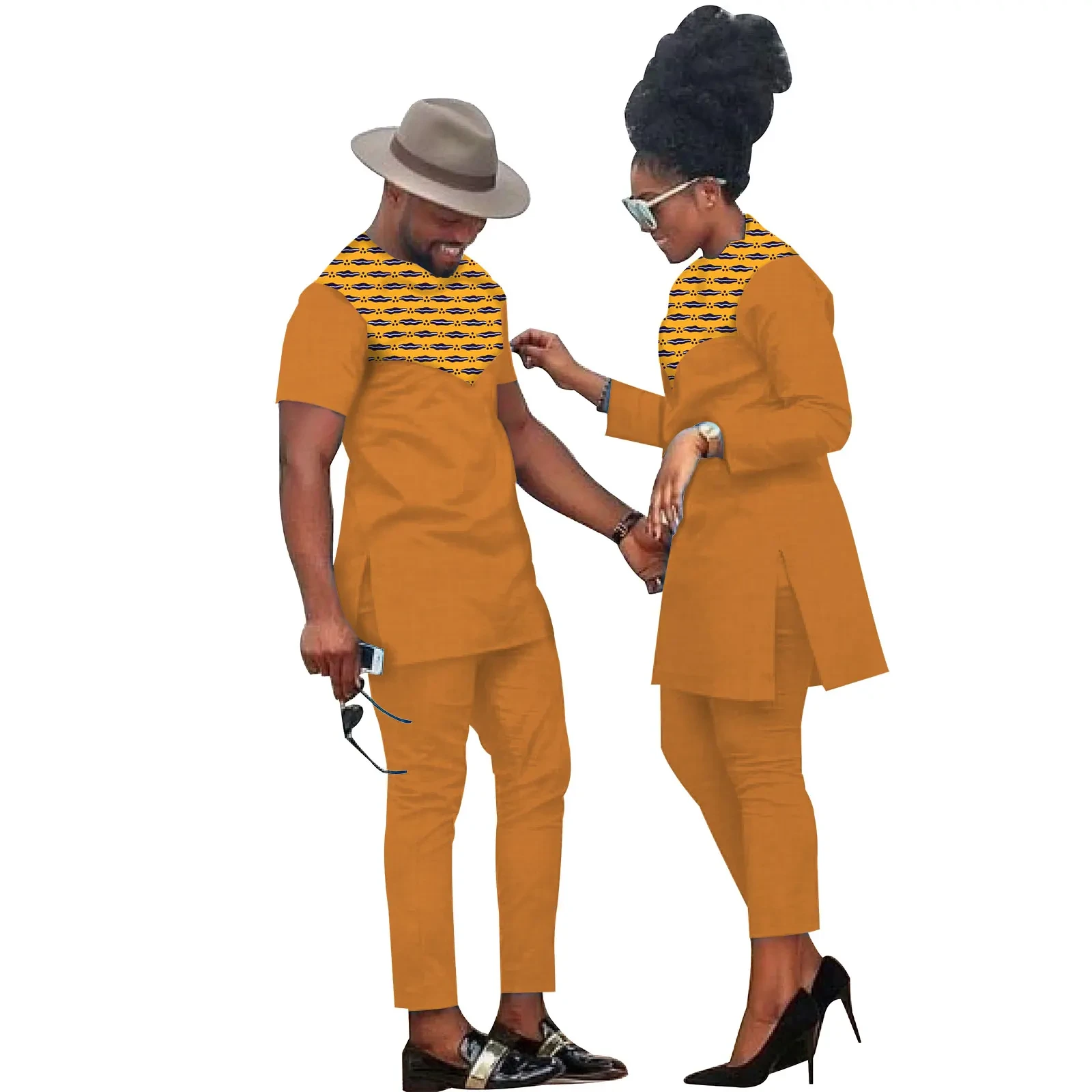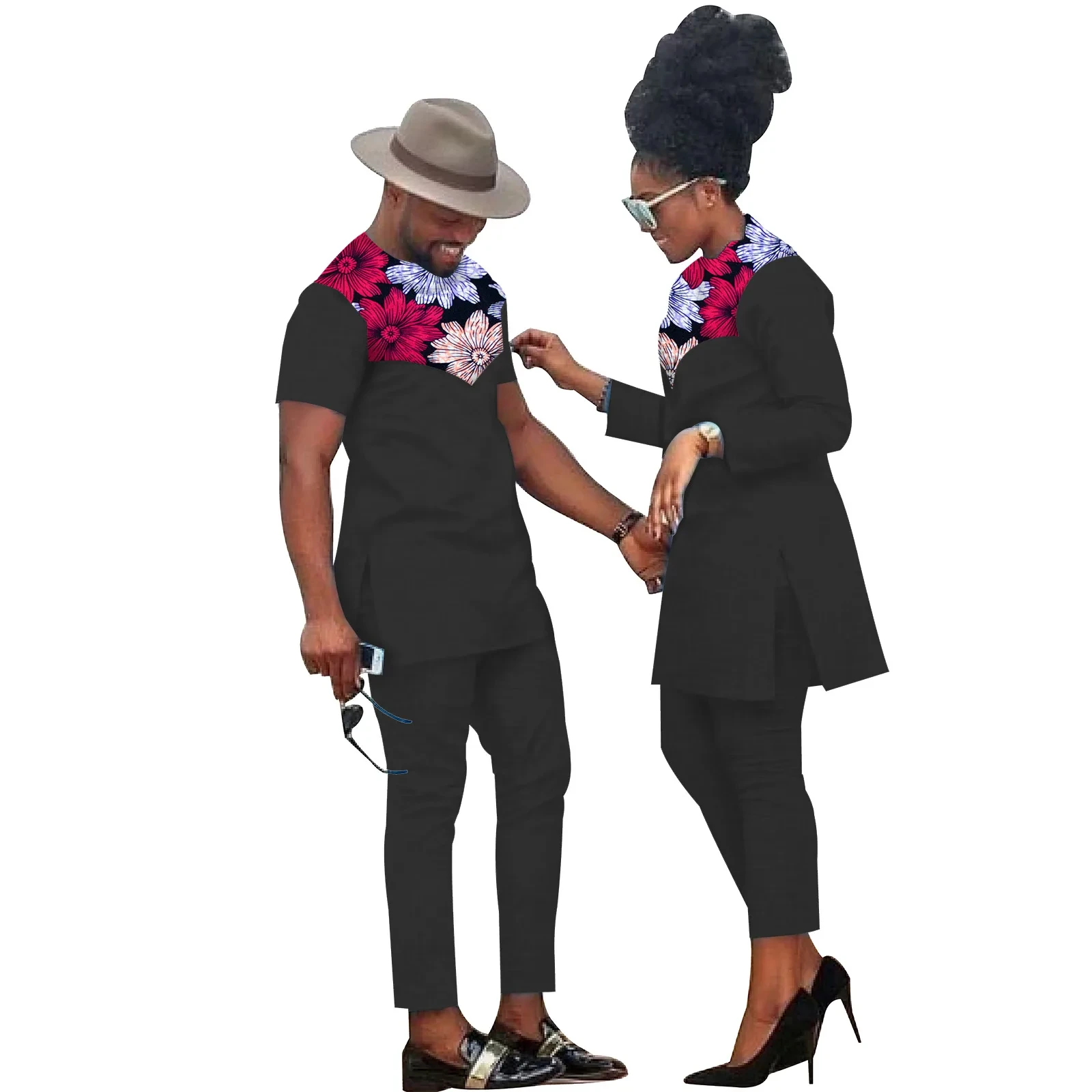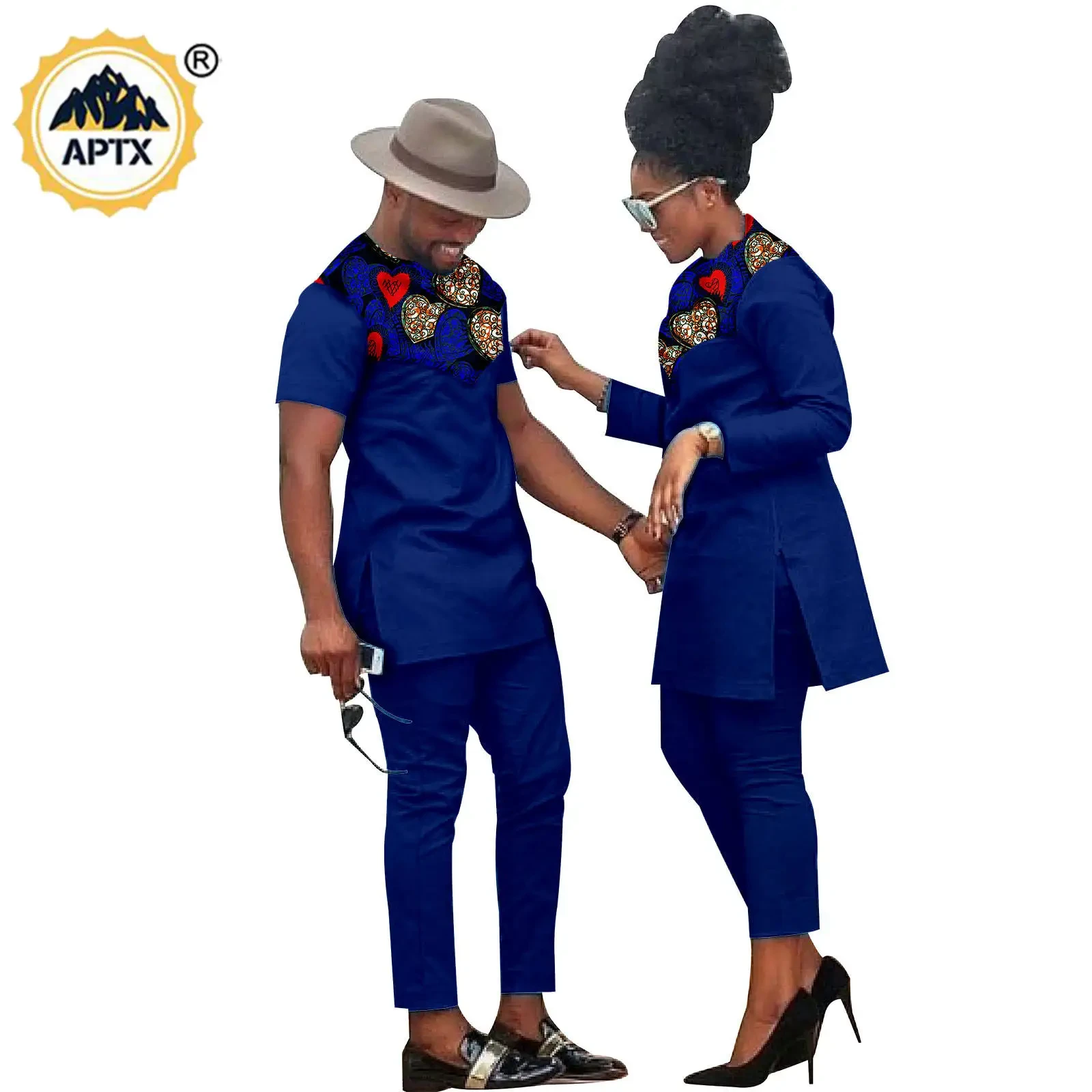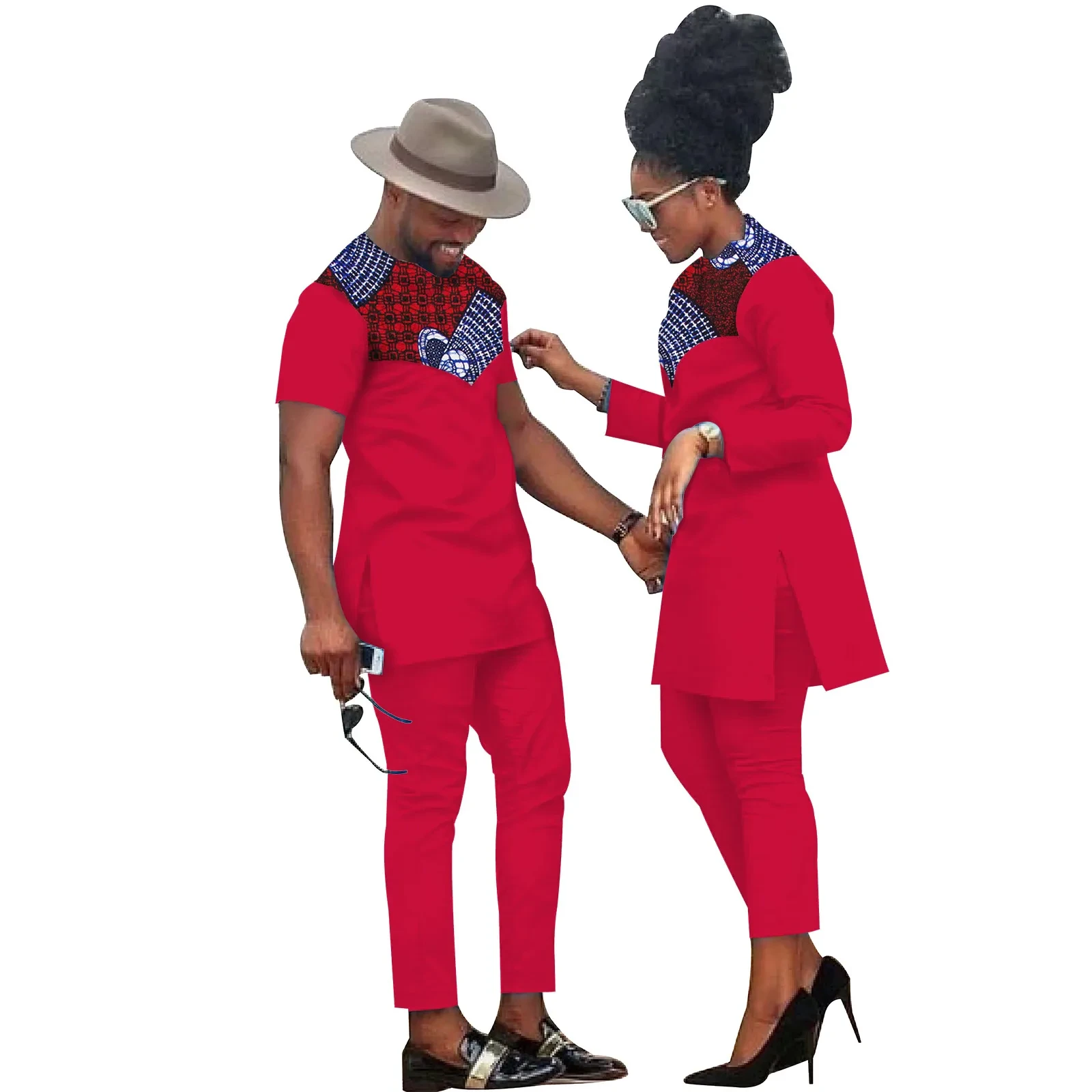 African Clothes for Couples Bazin Riche African Women Ankara Print Clothes Match Men Outfits Handmade Top and Pants Sets S20C001