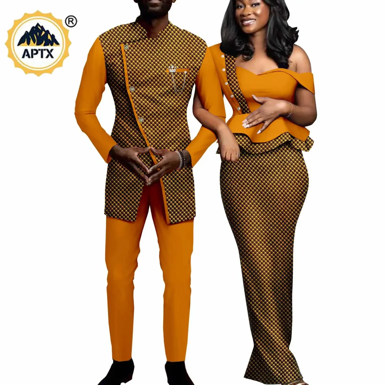 African Dresses for Women Matching Couple Outfits Men Jackets Coats and Pants Sets Dashiki Men Suits Outwear for Wedding Y23C008