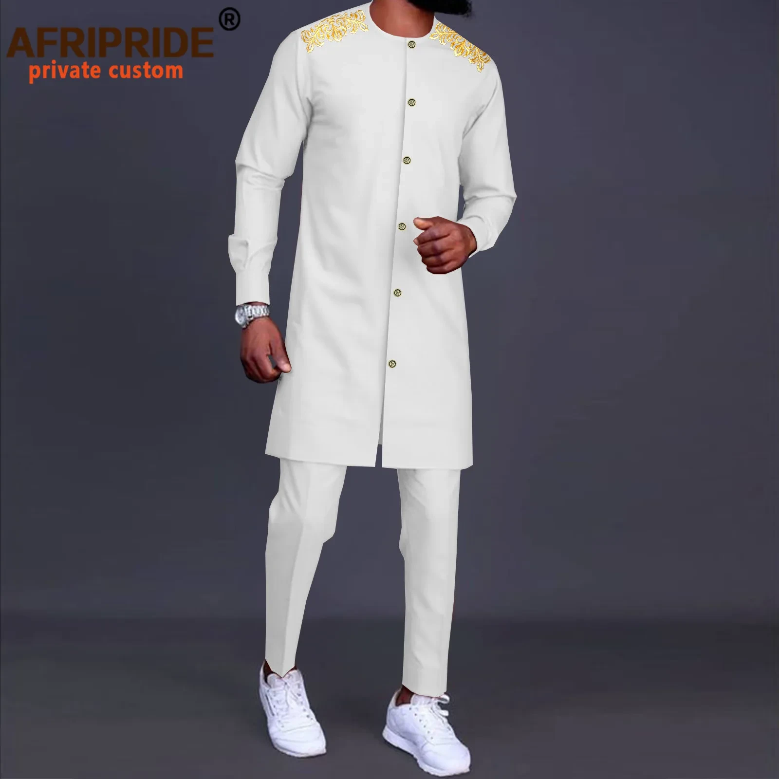 African Men Clothing Traditional Set Embroidery Jacket and Pants 2 Piece Set Single-breasted Blazer Dashiki Outfits A2116069