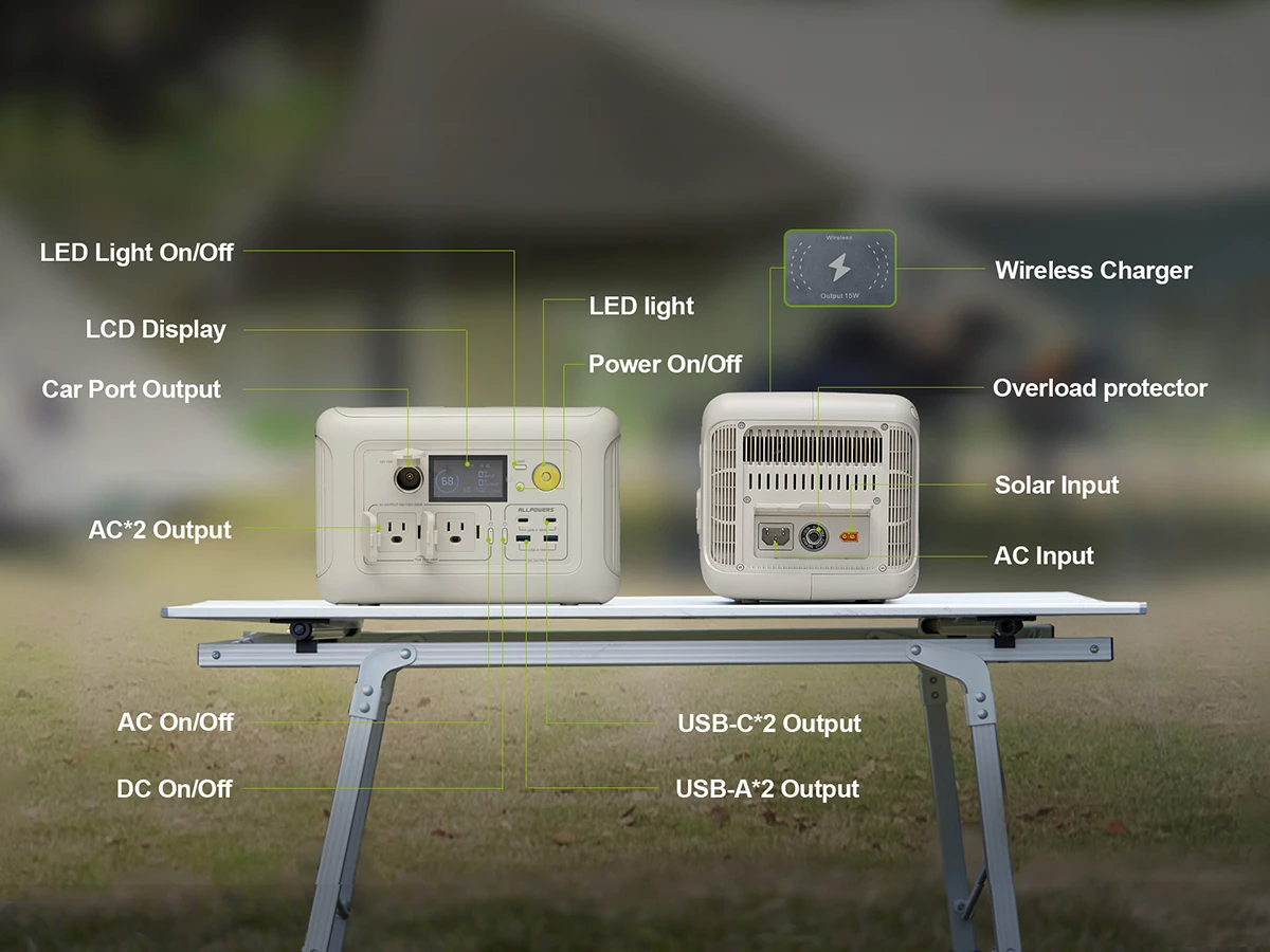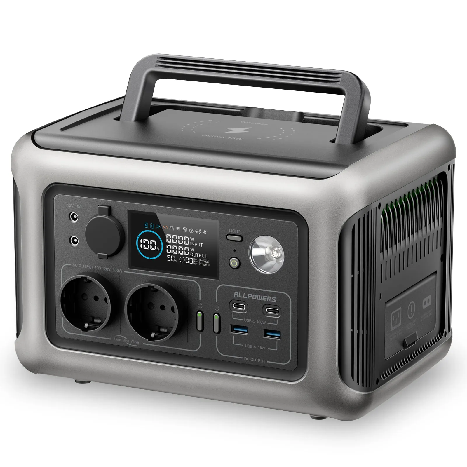 Battery type: LiFePO4 (3500+ Cycles up to 80%) Capacity: 299Wh/11680mAh AC Input: 400W max. Solar Input: XT60 - (12~60V)=8.8A 220W Max Cigarette lighter Input: 12V/24V 2 * AC-Output: 600W /220- 230V(EU,UK), 100V-110V(JP, US), peak 1200W 2 * USB-C Output: 100W max. 1 * Cigarette Output Port: 120W max. 1 * Wireless Charging: 15W max. LED lighting: Light mode / SOS mode Light mode / SOS mode: YES APP CONTROL & MONITORING: Within 10ms UPS Power Supply: Support Weight: 16.13 pounds/7.31KG Size: 28X19X19CM/ 7.6 x 7.5 x 11.2inches