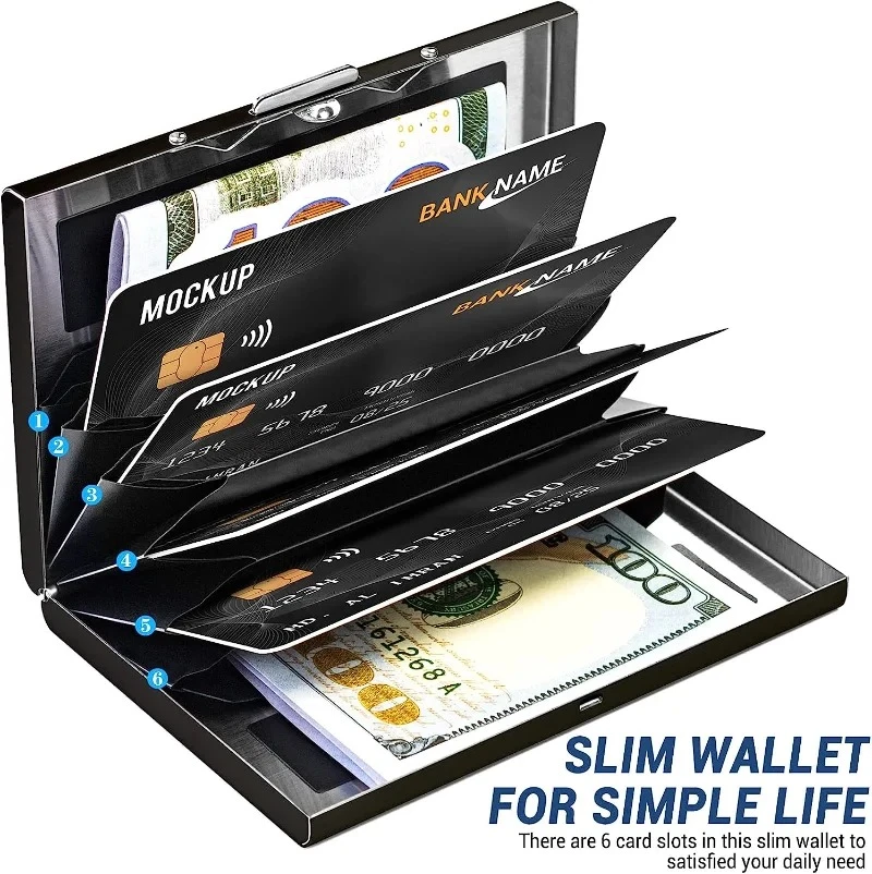Anti-Scan ANTI RFID Blocking 6 Cards Aluminum Metal ID Bank Credit Card Holder Slim Wallet Case Business Card Protection Holder