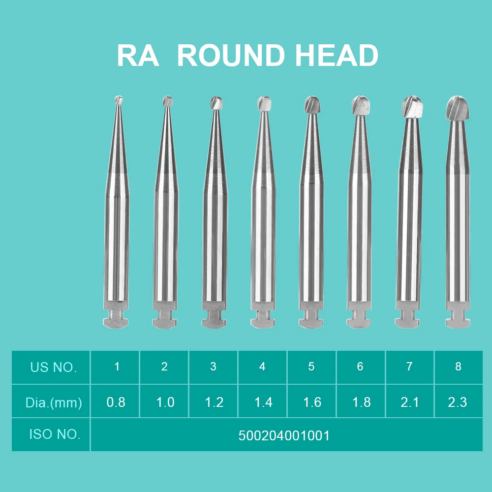 AZDENT 5pcs/pack Dental Tungsten Carbide Burs RA 2.35mm Round Bur for Low Speed