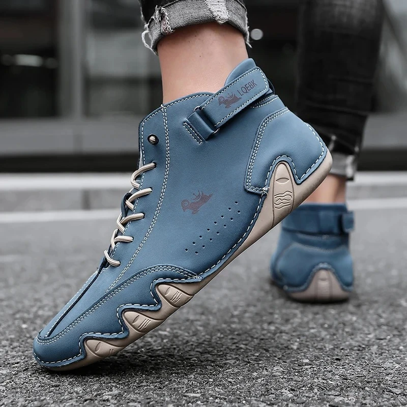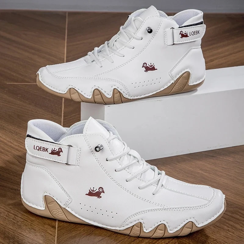 Boots for Men Casual High Top Sneakers Soft Sole Fashion Mens Slip-On Leather Dr