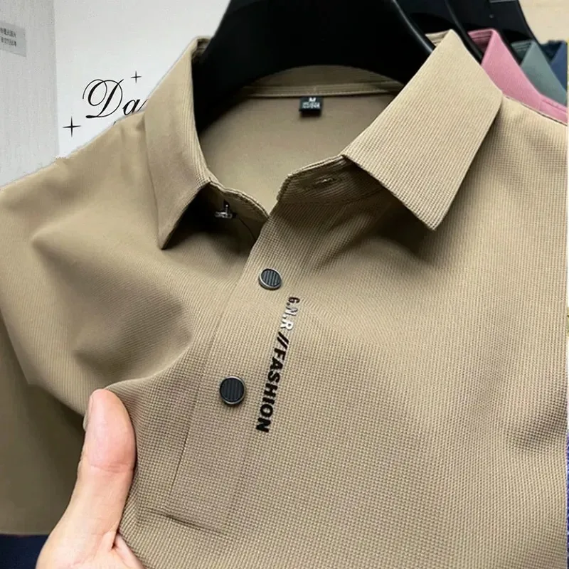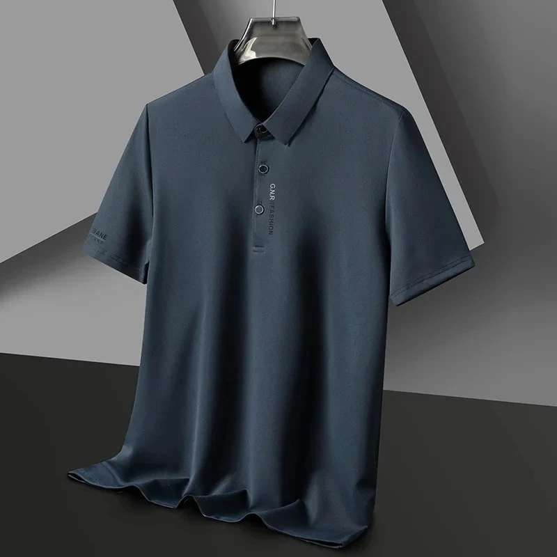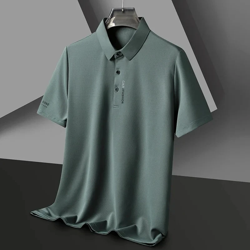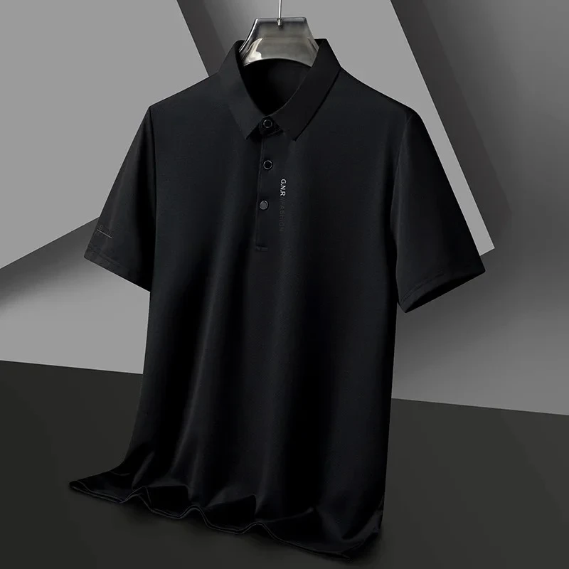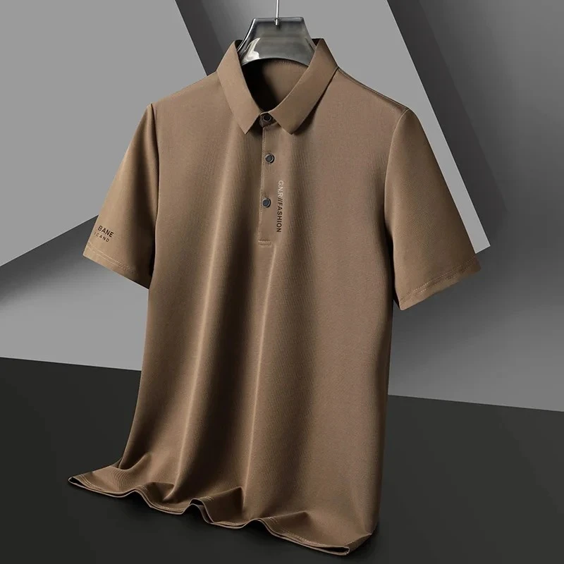 High end brand ice silk short sleeve polo shirt men's summer new fashionable printed casual T-shirt comfortable cool golf top