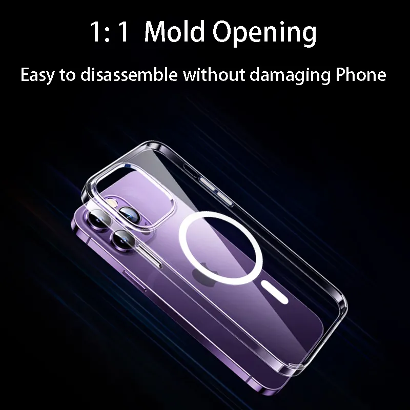 Transparent case iPhone 14 13 12 11 15 Pro Max suitable for Magsafe magnetic wireless charging 7 8 XR XsMax protective case