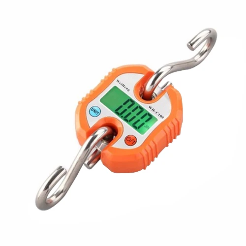 WH-C100 Micro Crane Scale Portable Electronic Scale150KG/50G Double Precision With Hook Scale for Industrial, Agricultural, Family Mini Electronic Crane Scale 1. Features: 150kg Double precision display: 0-100kg/50g, 100-150kg/100g, automatic conversion accuracy of different weighing ranges. 2. Range: 150kg/50g double precision 3. Stainless steel scale hook, high-strength ABS engineering plastic shell, industrial-grade materials and workmanship, and leather durable 4. High-quality green backlight HD LCD display 5. 2*AAA battery power supply, super loud buzzer prompt (not included) 6. When weighing, the value can be selected to lock and unlock; peeling, zero tracking, 120 seconds automatic shutdown 7. Unit: kg, lb, jin 8. Scale body size: 7.8*8.8*3.3cm 9. LCD size: 51*20mm 1* WH-C100 Scale (Not Include Battery)