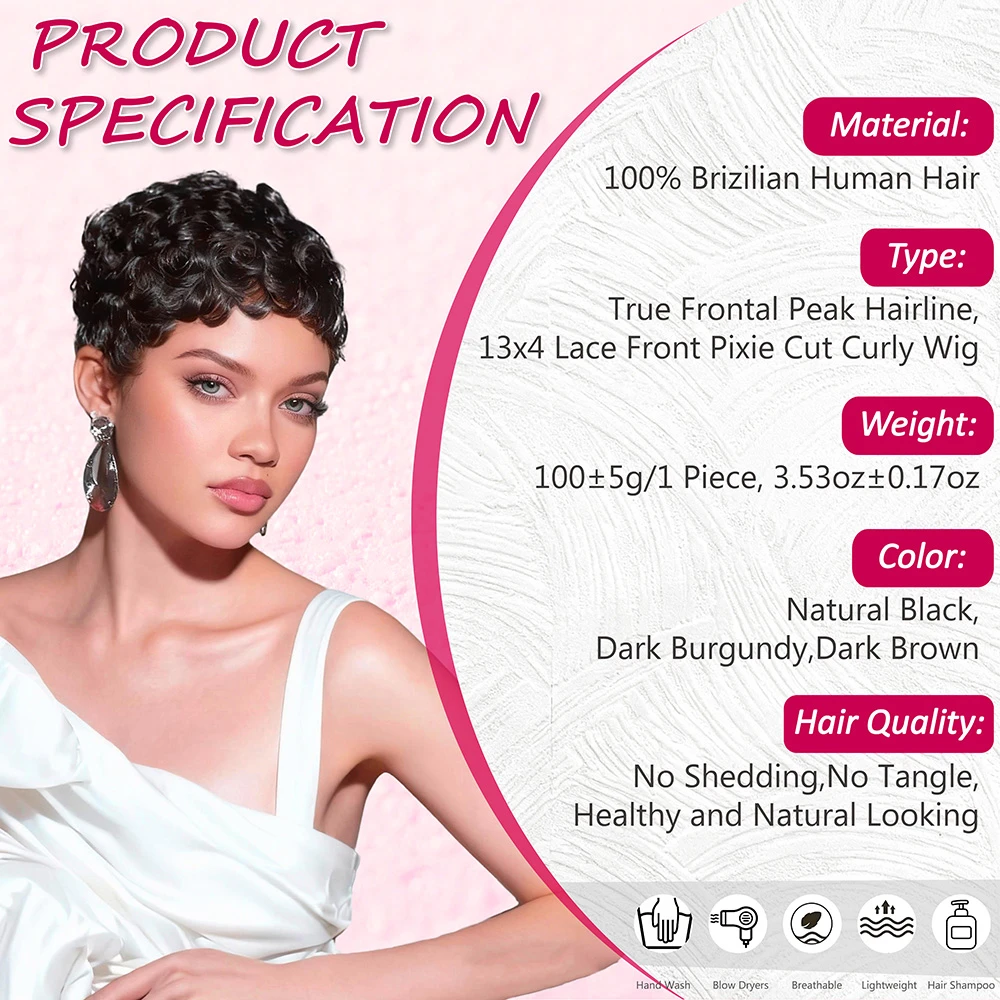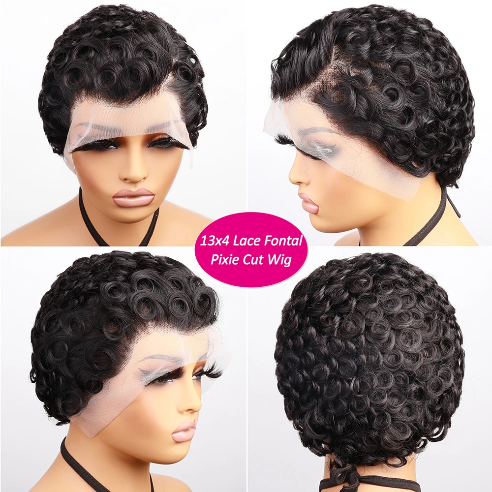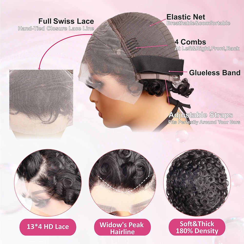 Curly Lace Frontal Wig 13x4 HD Lace Wig Human Hair Short Curly Human Hair Wigs 180% Density For Women