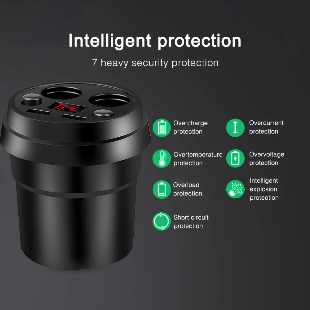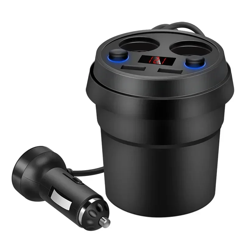 Features: 1. Multifunctional cigarette lighter shunt, double cigarette lighter holes. 2. With voltage display, car voltage detection. 3. Dual USB charging ports. 4. Controllable switch. Application: 12V-24V Material: ABS Input voltage: 12-24 (V) Output voltage: 5 (V) Output current: 3100 (mA) Working temperature: 40 (?) Output interface: 2USB Product size: 82*61mm