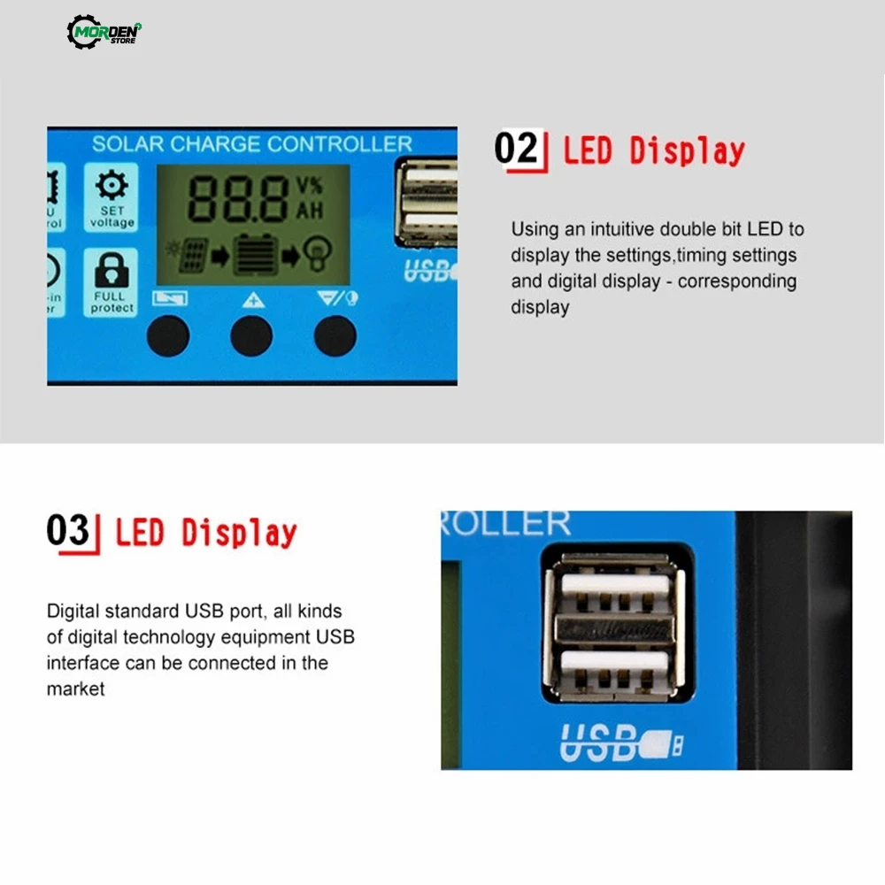 4. This controller can only use photovoltaic panels as a charging power source. Do not use DC or other power sources as charging power sources.