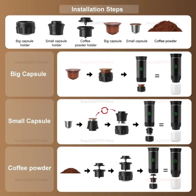Experience the ultimate in portable coffee brewing with our versatile 3-in-1 portable espresso machine—perfect for coffee lovers on the go. Equipped with a durable stainless steel water compartment, this compact device seamlessly combines a ground coffee section and a capsule holder—compatible with both small and large capsules, as well as ground coffee for flexible brewing options. Enjoy rich, cafe-quality espresso with a powerful 20-bar high-pressure extraction system that ensures optimal flavor and aroma. Designed for convenience, this lightweight espresso maker is ideal for travel, camping, office use, or home—allowing you to brew your favorite hot or cold coffee drinks anytime, anywhere. Innovative and user-friendly, it features intelligent heating functions—simply double-click the power switch to activate heating and extraction, or long-press for continuous operation. The easy-to-use control enables quick and precise brewing, making it suitable for both hot espresso and cold beverages. Designed for hassle-free maintenance, this portable espresso machine features detachable parts that are easy to disassemble and rinse—ensuring long-lasting performance with minimal effort. Additionally, it supports convenient charging via Type-C USB cable—allowing you to power up on the move, support simultaneous charging and brewing, and enjoy your coffee without interruptions. Key Features: • Multi-Functional Design: Compatible with capsules and ground coffee—ideal for various coffee preferences • Compact Lightweight: Perfect for travel, camping, outdoor adventures, or office use • High-Pressure Extraction: 20-bar system for rich, smooth espresso • Intelligent Heating Extraction: Fast setup with simple double-click operation • Portable Charging: Supports Type-C USB charging—charge anytime, anywhere • Easy to Clean & Disassemble: Detachable parts for effortless maintenance • Suitable for Hot & Cold Brew: Enjoy a variety of coffee beverages Upgrade your coffee experience with this all-in-one portable espresso machine—your perfect coffee companion for busy mornings, outdoors |