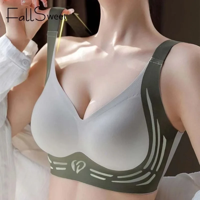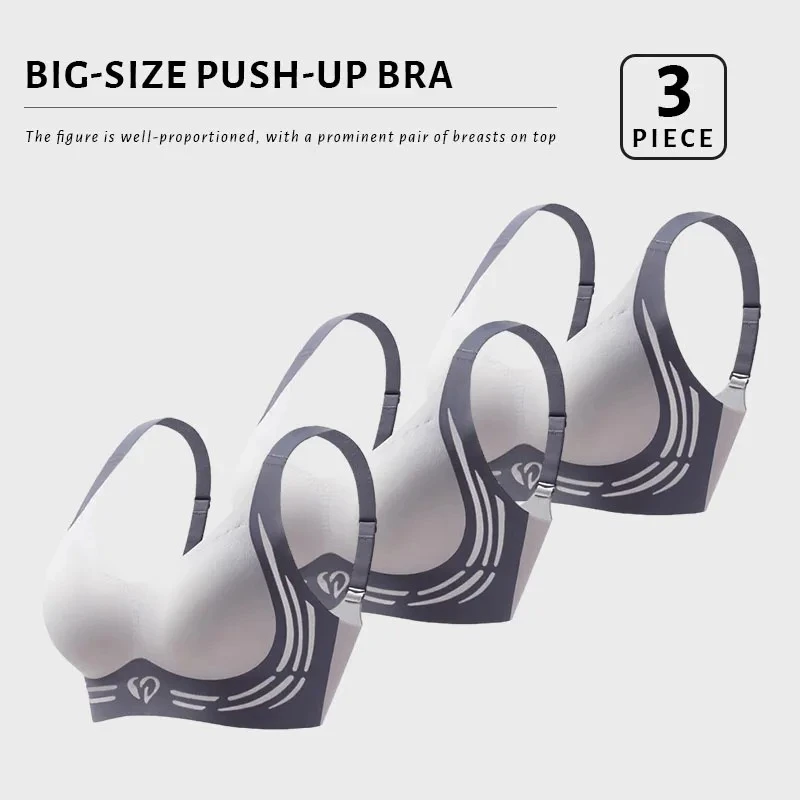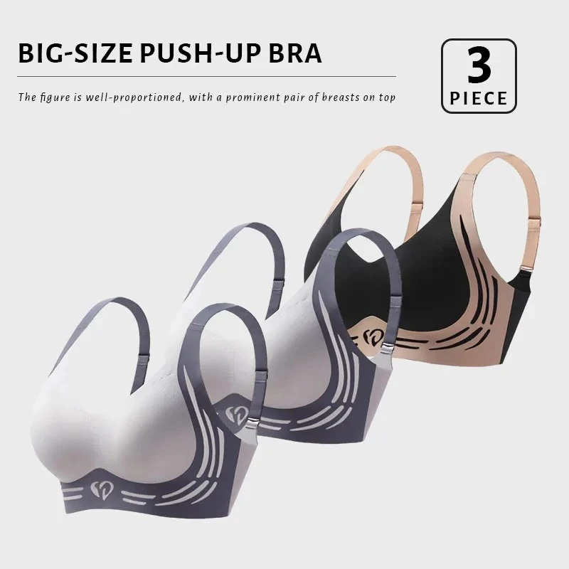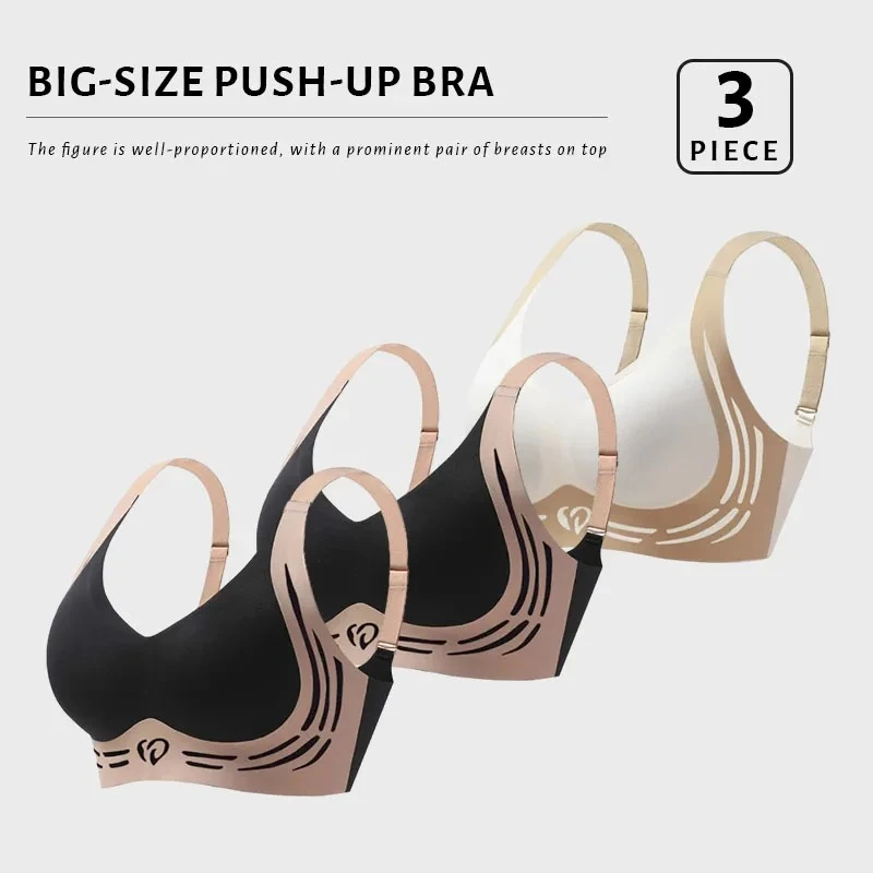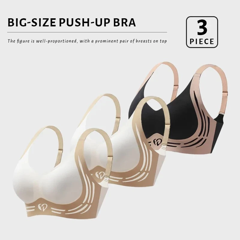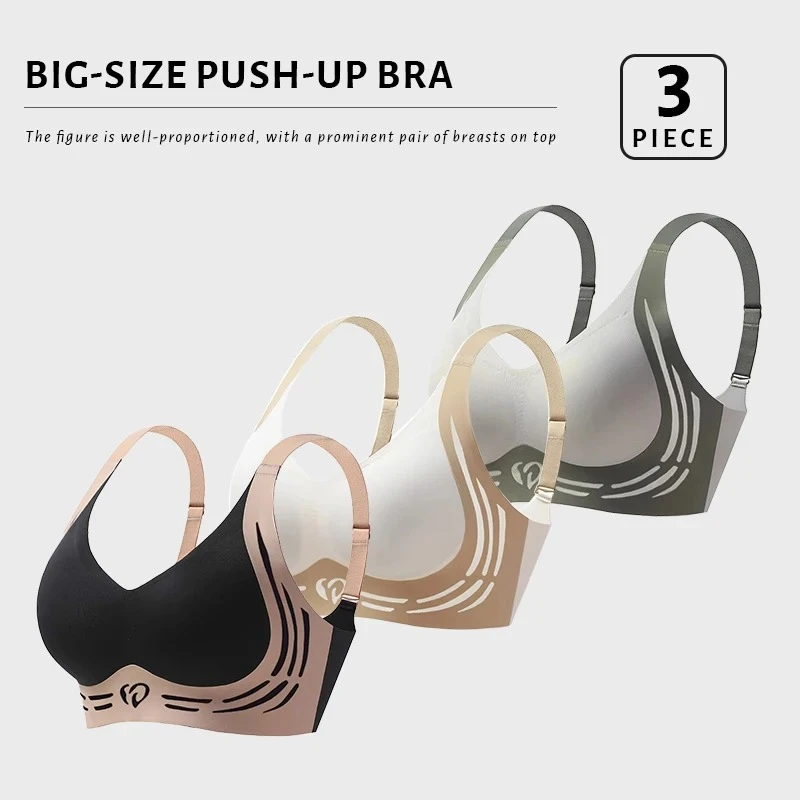 FallSweet 3PCS Plus Size Push Up Bra for Women Wireless Lift-Up Anti-Sagging Brassiere Adjustable Straps Seamless Lingerie M-4XL