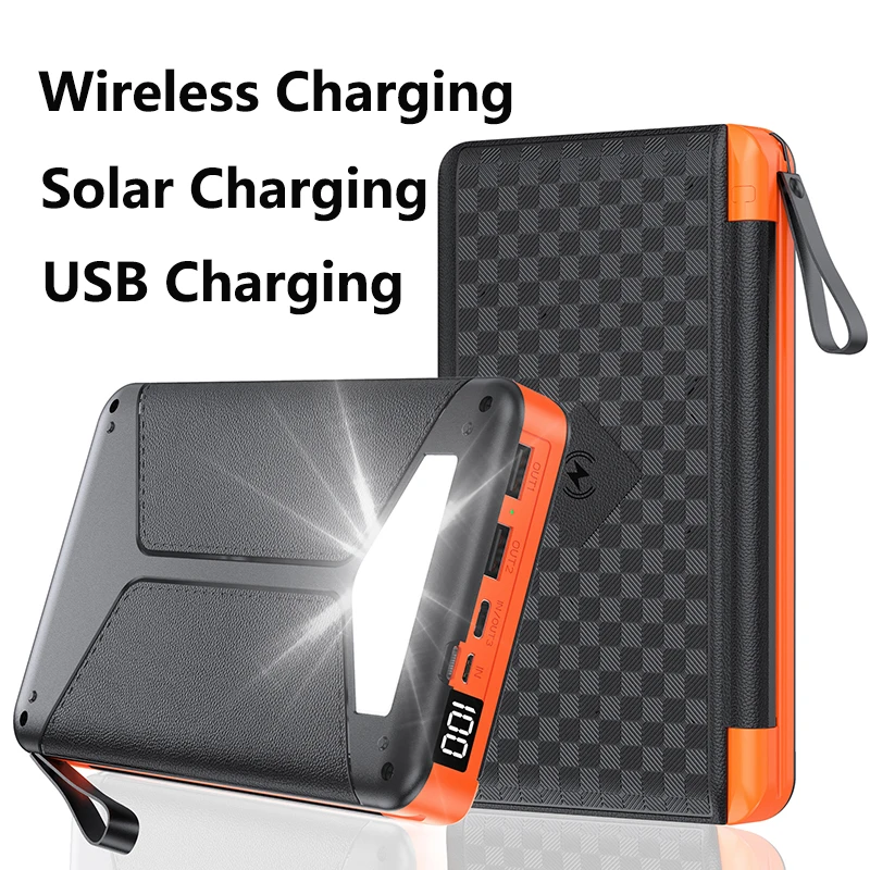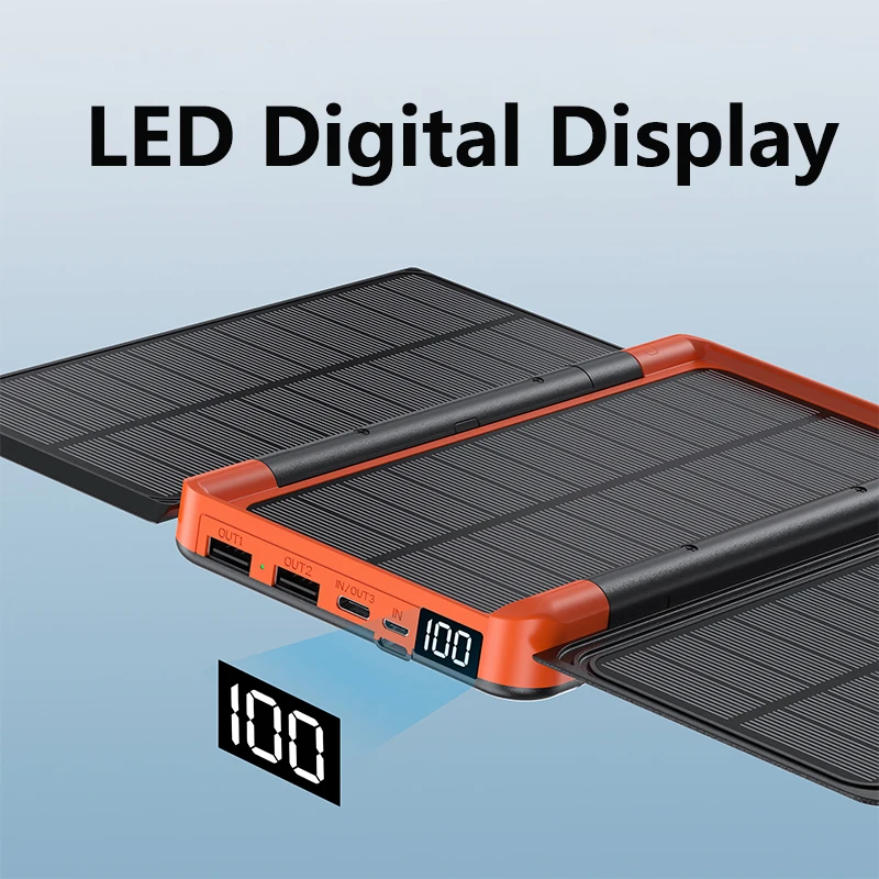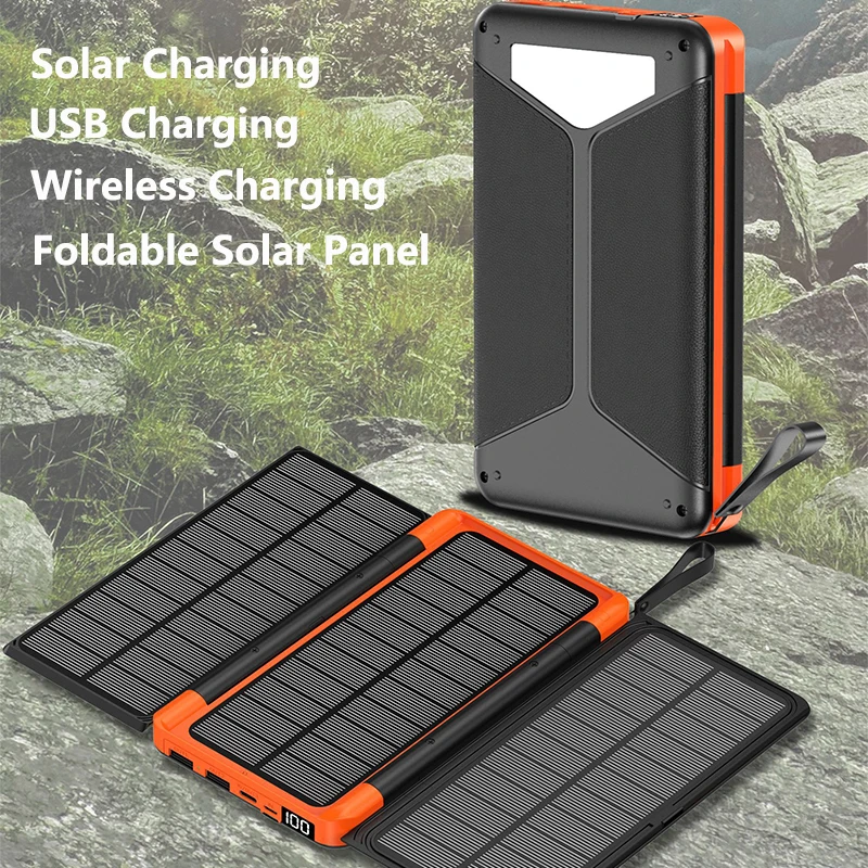 Specification: Item: Folding solar panel wireless charging Power bank Input: DC5V/2.1A Output: DC 5V/3.1A Wireless Charging:5W Solar Power:6W Monocrystalline silicon solar panel Actual capacity: 7000mAh/10000mAh/20000mAh Material: plastic ABS Color: black, orange, blue, green, red Size:176*99*22.4mm or 176*99*32mm Compatible with: for ipad, for iphone, other brand mobile phones, for PSP, MP3, MP4 and other digital products Features: Support Wireless Charging Support Solar Charging Support USB Charging Support Type C Input and Output with Foldable 3 Solar Panels with LED Camping Light With LED Digital Display With Lanyard Package Included: 1 * Power bank 1 * Charger Cable 1 * Retail Box 1 * User Manual