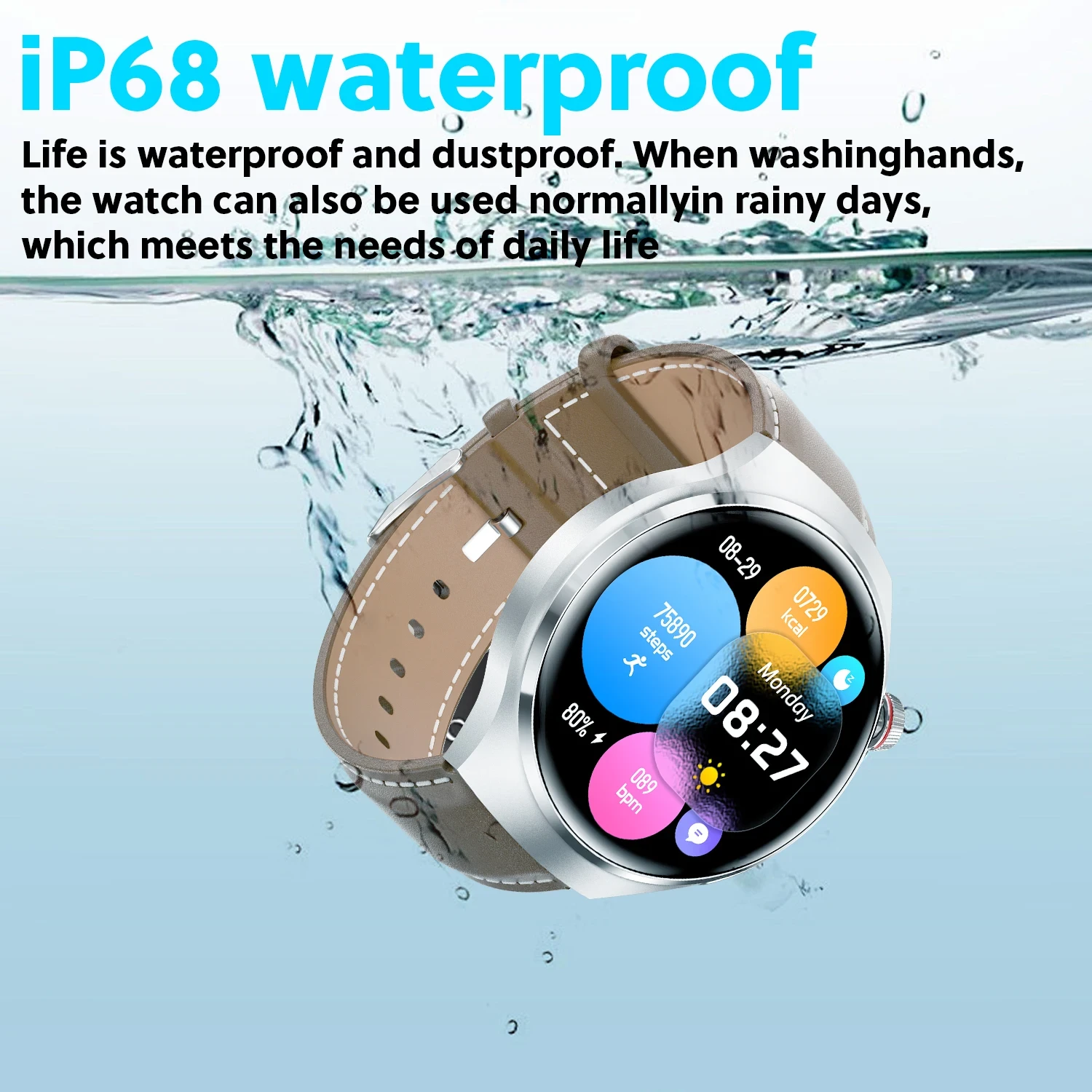 Product parameters: screen size:1.6 inches Waterproof Level: IP68 Life time: About 5-7 days of use and 30 days of standby Resolution:360*360 Battery capacity:300mAh APP: RDFit Charging Method: Wireless charging Compatible System: Android 4.4 or above, IOS 9.0 or above Features: High-definition Bluetooth Call, compass, off-screen pointer, cover hand off screen, custom picture, APP background download picture, QR code (download and connection two-in-one), find mobile phone, calendar, motion track, restart, message push, remote Camera, Alipay, sleep monitoring, altitude, body temperature monitoring, weather, blood pressure, voice assistant, my QR code, button definition settings, blood oxygen, breathing, dial, pedometer, timer, menu style, factory reset, Settings (Smart Island, Drainage, Power Saving Mode, Screen Off Time, Raising Wrist to Brighten Screen, NFC, Brightness, Button Definition, Vibration Intensity, Do Not Disturb Mode, Password Settings, Language, Time and Date Settings, Connecting to APP, Factory Reset, Restart , Power Off, About), Phone (Contacts, Call History, Dialpad, Call Settings, Emergency Call), Calculator, Heart Rate, Language Selection, About Watch Information, Alarm Clock, Sports Mode, Bluetooth Music, Bluetooth Calls, Stopwatch, Off Screen time, vibration intensity, time and date setting, password lock. Drop-down menu: Bluetooth switch, do not disturb mode, brightness adjustment, one-key lock screen, weather, shutdown, payment code, Douyin, Alipay, always-on setting, NFC, settings, alarm clock, vibration switch, menu style, factory reset. Swipe up menu: message push. Swipe right: split screen (weather, sleep, heart rate, blood pressure, blood oxygen, music, common applications). Swipe left: Add applets (heart rate, blood pressure, sleep monitoring, blood oxygen, exhalation training, step counting, weather, music, body temperature monitoring). Watch supported languages: 1. Chinese, 2. English, 3. Russian, 4. Spanish, 5. German, 6. Italian, 7. French, 8. Portuguese, 9. Polish, 10. Dutch, 11. Greek, 12. Turkish, 13. Romanian, 14. Japanese, 15. Traditional Chinese, 16. Hebrew, 17. Czech, 18. Slovak, 19. Hungarian, 20. Arabic, 21 .Indonesian, 22. Korean, 23. Vietnamese, 24. Thai, 25. Persian, 26. Ukrainian, 27. Malay, 28. Burmese Package: smart watch*1 charging cable*1 user manual*1 original box*1 After receiving the watch, please charge it first. Because after a long period of logistics, the watch has a low battery. Before using, scan the QR code in the manual to download the app and connect it to the watch with APP.