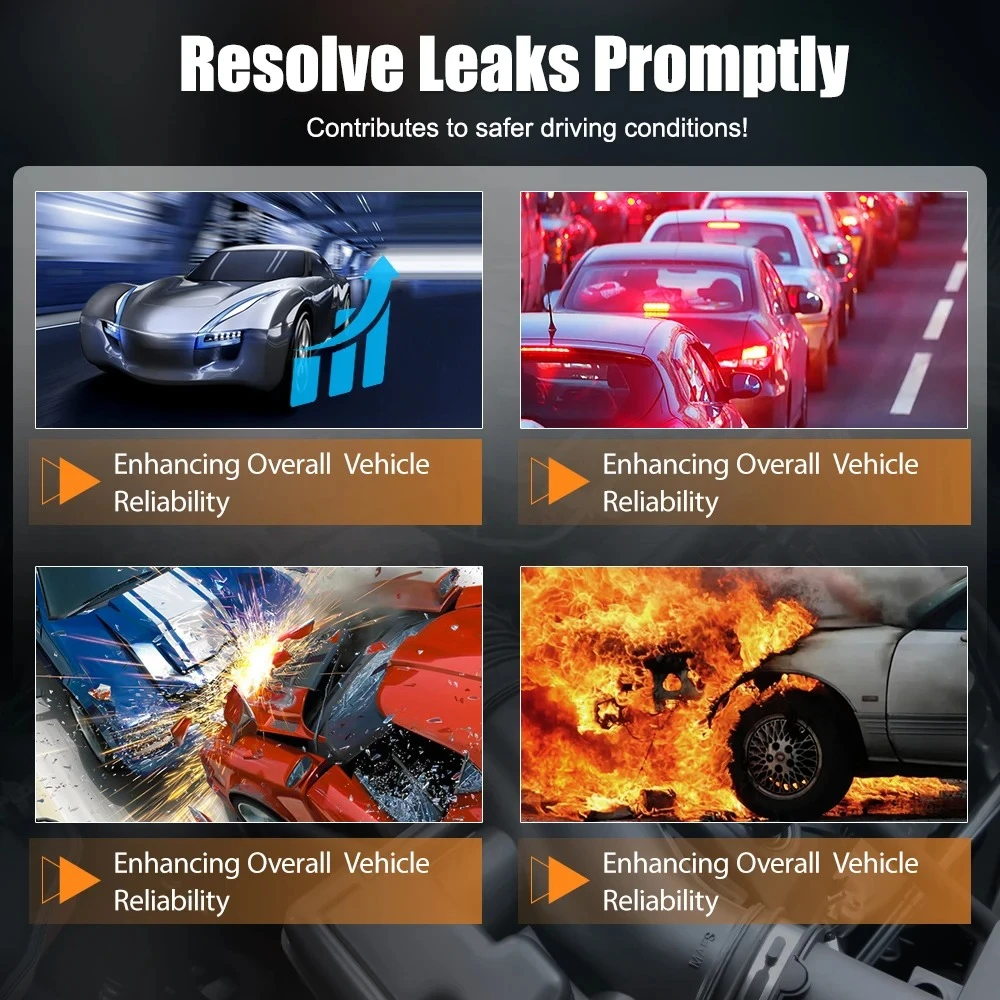 DescriptionNotice any weird smells or fluids? Is your ride acting all wonky? Dashboard lighting up with CEL, BRAKE, AC, EVAP, STEERING, COOLANT, and more? Foxwell SD201 is capable of promptly detecting and addressing leakage issues in various areas such as the engine, e-xhaust system, or vacuum lines. Preventing leak from escalating and leading to substantial repair costs when taken to a repair shop.