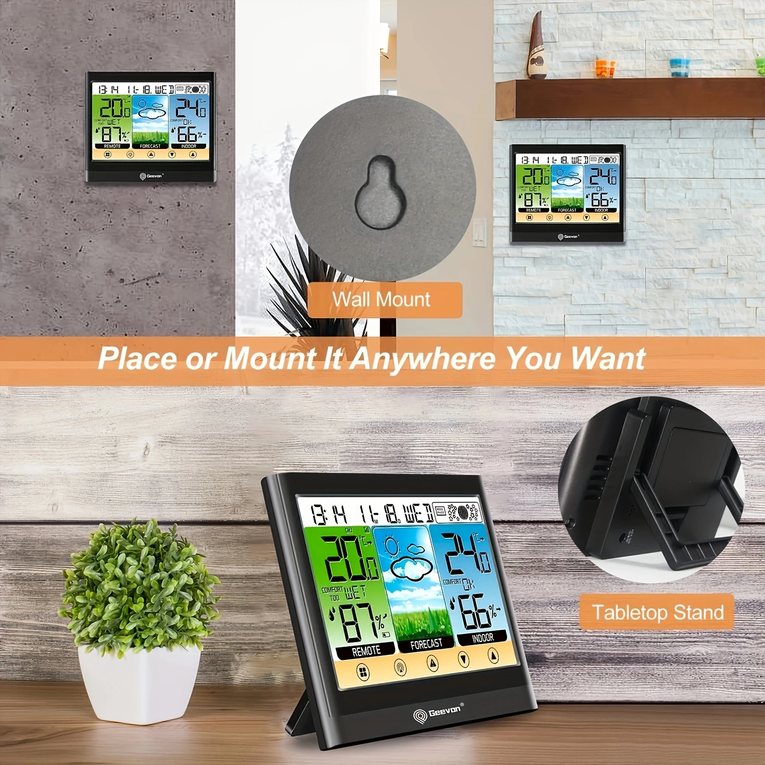 【Customizable Hi/Lo Alert】 Geevon weather station wireless, designed for indoor and outdoor use, features a temperature and humidity alert function that informs you of bad climate conditions and reminds you to take proper action to protect your family's health in time by setting the high/low values of temperature and humidity. It also displays the maximum and minimum records for the past 24hrs.