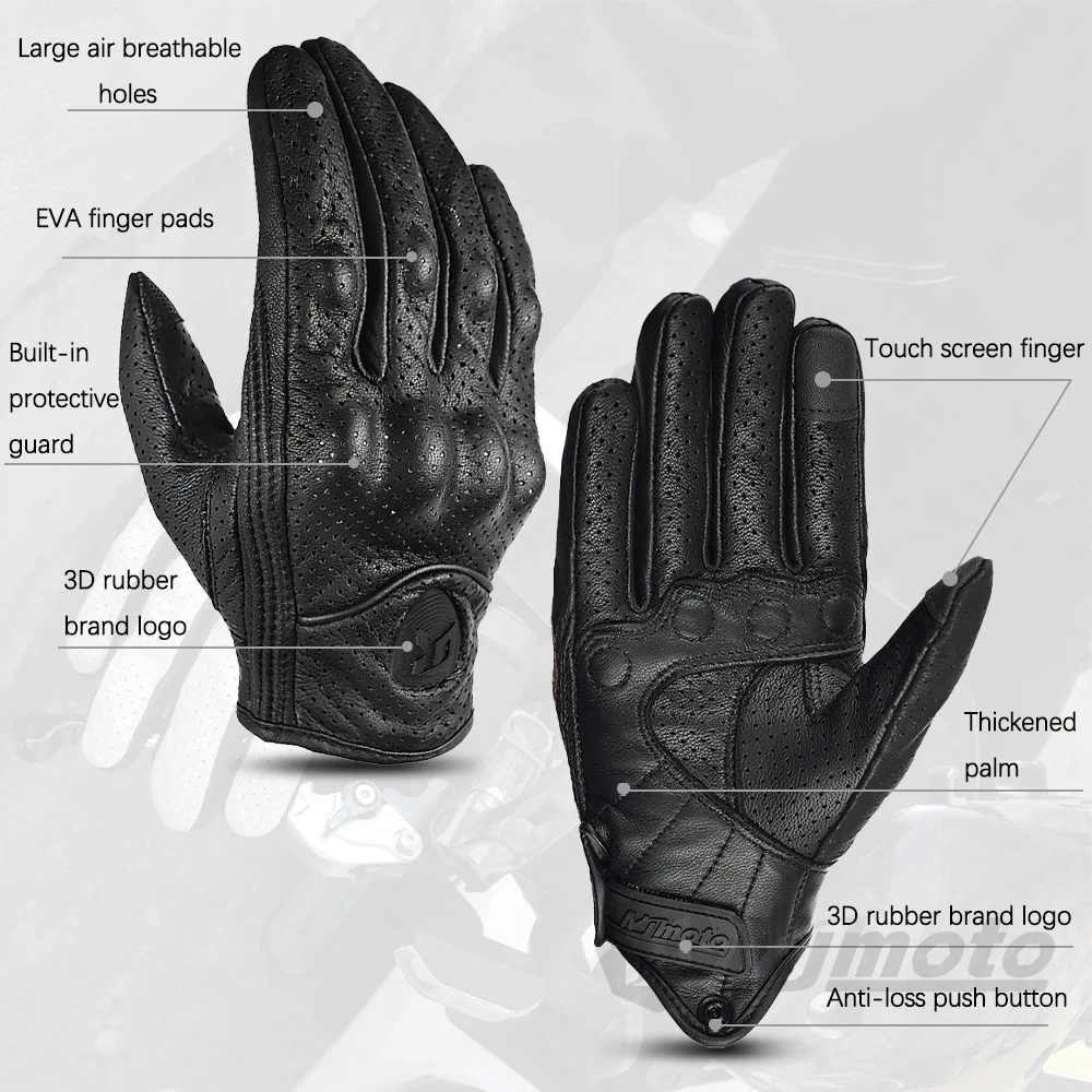 SPECIFICATION Brand: MJMOTO Model: MJ-ICON10 Color: Black /Red /Yellow/White/ Black-Hole Size:S/M/L/XL/XXL Weight: 0.2kg Material: 85% Goat Leather,5% PU,3% Nylon, 2% Clarino,4% EVA,1% Other Season: Spring, Summer, Autumn Application: Motorcycling, riding, skateboarding, biking, fitness, hunting, logging,climbing, etc |