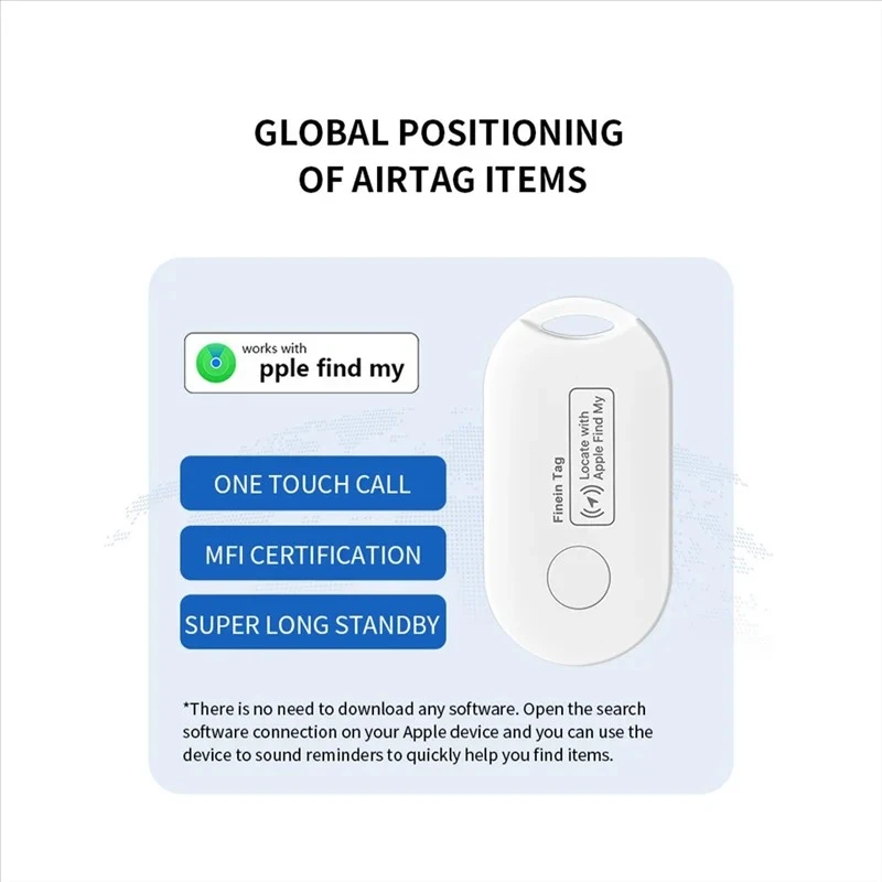 Smart positioning and search. Anti-lost device that supports for Find My function Replace for AIRTAG for global positioning of items. Global accurate positioning at any distance. As long as there is an device (IPHONE/IPAD/MAC) around, the location of the item can be tracked Easily find it at close range. Through the "Item" tab of the Find APP, the built-in speaker of for FINEINTAG can play a sound to indicate the location. You can easily find it by following the sound Extremely long standby time. Ultra-low power consumption can last up to 10 months. It means you no longer need to change the battery frequently, saving precious time Accessibility: record lost location, rename items, customize item icons Connectivity: Bluetooth technology for proximity sensing, supports lost mode Alarm volume: built-in buzzer (Greater than 100 dB) Battery: replaceable CR2032 button battery Operating environment: operating environment temperature: -20°C to 60°C (-4°F to 140°F) Color: White Material: ABS Package Contents: 1 x GPS Tracker 1 x Instructions in Chinese and English Only the above package content, other products are not included. Note: Light reflection and different displays may cause the color of the item in the picture a little different from the real thing. The measurement allowed error is +/- 1-3cm.