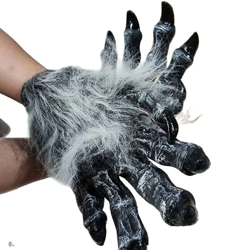 Halloween Party Wolf Gloves Plush Latex Werewolf Costume Fingernails Adult Hands Paws Claw for Props Cosplay Party Easter Gloves
