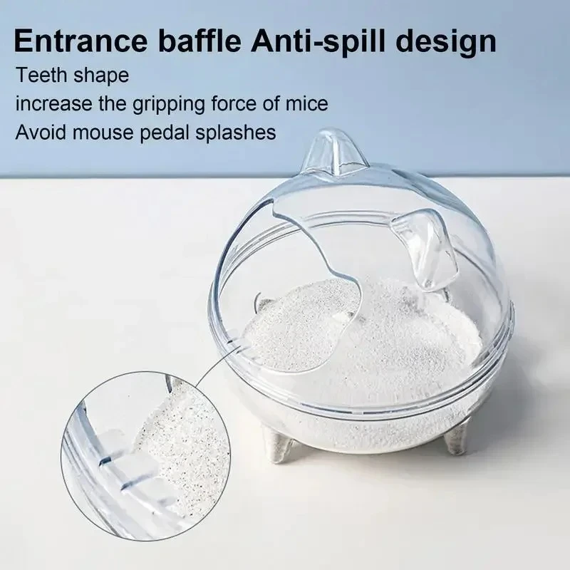 3.Anti-spill Design: The "Die" shape increases the gripping force of mice and avoids mouse pedal splashes entrance baffle, so Hamster Bathroom will be a good choice for you.