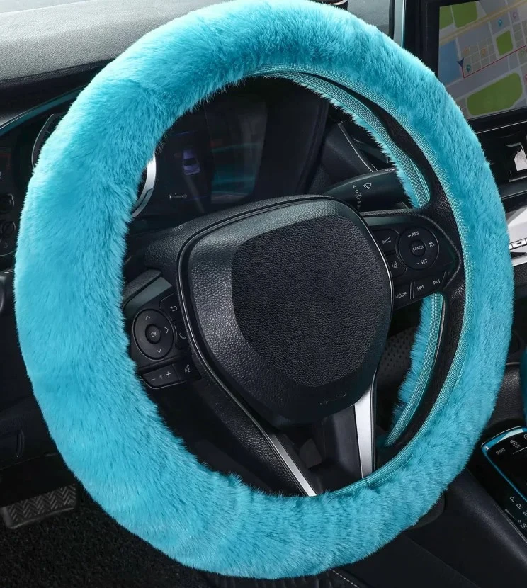 Heated & Ultra Soft Fluffy Steering Wheel Cover For Winter Warm 3pcs/Set, for Women's Car Interior Accessories,Universal 15 inch