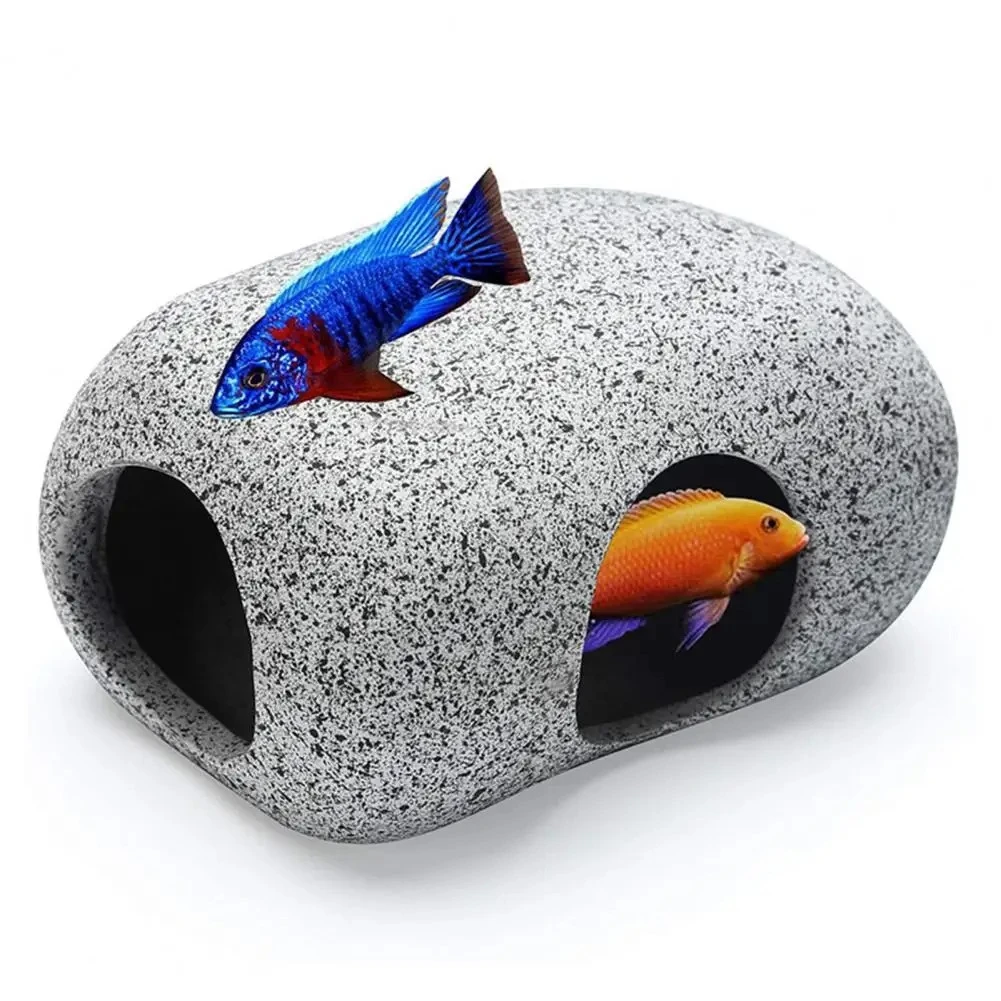 What this rock cave can offer is that it can relieve the fish’s stress and reduce the aggression, because it is a house for them and they can rest and hide in it.