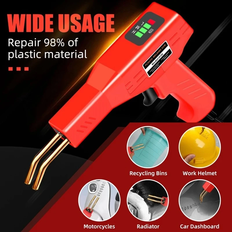 This kit can perform a variety of plastic repairs. Versatile Applications: Ideal for repairing a variety of plastic items including car bumpers, dashboards, motorcycles, kayaks and children's toys. User-friendly design: Features a comfortable, non-slip rubber grip and an LED headlight for increased visibility in low-light conditions. The simple and effective design ensures ease of use, allowing even beginners to achieve professional-grade plastic repairs. Save money by making the repair yourself with this easy-to-use kit that melts the staples into the plastic components without penetrating the board. Multi-purpose application: It can repair at least 98% of plastics on the market. Suitable for repairing: bumpers, dashboards, lamp holders, plastic rings, radiators, spoilers, handles, headlights, plastic wings, automobile and motorcycle plastic devices, etc. Plug Type:EU Plug,it applies to Indonesia, Germany, France, Spain, Italy and so on. Voltage:AC 220V Colour:As Shown Material:Plastic Package Contents: 1 * Hot melter+nail+pliers Only the above package content, other products are not included. Note: Light reflection and different displays may cause the color of the item in the picture a little different from the real thing. The measurement allowed error is +/- 1-3cm.