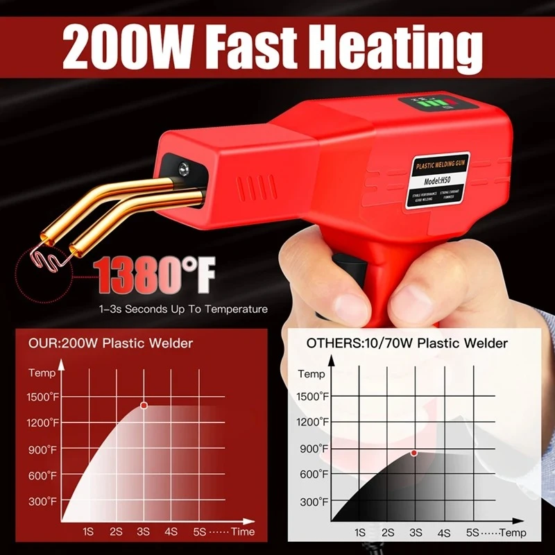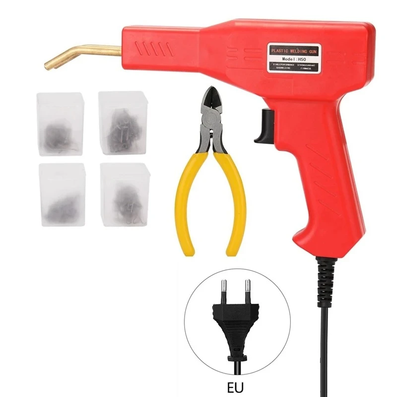 This kit can perform a variety of plastic repairs. Versatile Applications: Ideal for repairing a variety of plastic items including car bumpers, dashboards, motorcycles, kayaks and children's toys. User-friendly design: Features a comfortable, non-slip rubber grip and an LED headlight for increased visibility in low-light conditions. The simple and effective design ensures ease of use, allowing even beginners to achieve professional-grade plastic repairs. Save money by making the repair yourself with this easy-to-use kit that melts the staples into the plastic components without penetrating the board. Multi-purpose application: It can repair at least 98% of plastics on the market. Suitable for repairing: bumpers, dashboards, lamp holders, plastic rings, radiators, spoilers, handles, headlights, plastic wings, automobile and motorcycle plastic devices, etc. Plug Type:EU Plug,it applies to Indonesia, Germany, France, Spain, Italy and so on. Voltage:AC 220V Colour:As Shown Material:Plastic Package Contents: 1 * Hot melter+nail+pliers Only the above package content, other products are not included. Note: Light reflection and different displays may cause the color of the item in the picture a little different from the real thing. The measurement allowed error is +/- 1-3cm.