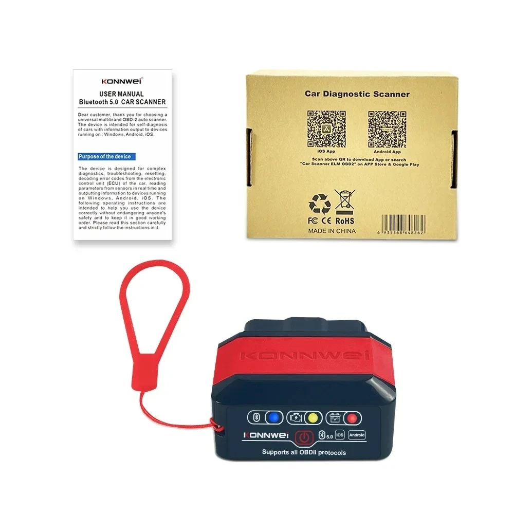 Konnwei KW906 ELM327 V1.5 Bluetooth 5.0 for IOS Android V1 5 OBD2 Scanner Auto Car Diagnostic Tools Code Reader pk Vgate iCar2 KW906 bluetooth car OBD2 code reader applies for all 12V gasoline and Diesel vehicles/hybrid electric vehicles, it's a 16 Pin plug that plugged into the vehicle OBD port. KONNWEI KW906 OBD2 scanner comes with an ON/OFF switch to prevent constantly disconnecting your unit from the OBDII port. It also support high speed communication and low power sleep mode. By connecting with phone, the OBD2 scanner can quickly read car engine emissions data and check drive cycle verification. Features: KW906 BT5.0 car OBD2 diagnostic scanner is able to detect and interpret these protocols automatically. It also provides support for high speed communications and a low power sleep mode. KW906 BT5.0 measuring only 5*4*2.5cm. It also comes included with a power switch built-in to prevent the need for having to constantly disconnect your unit from the OBDII port.