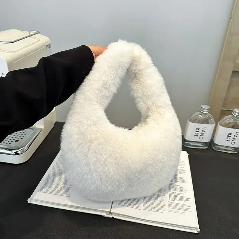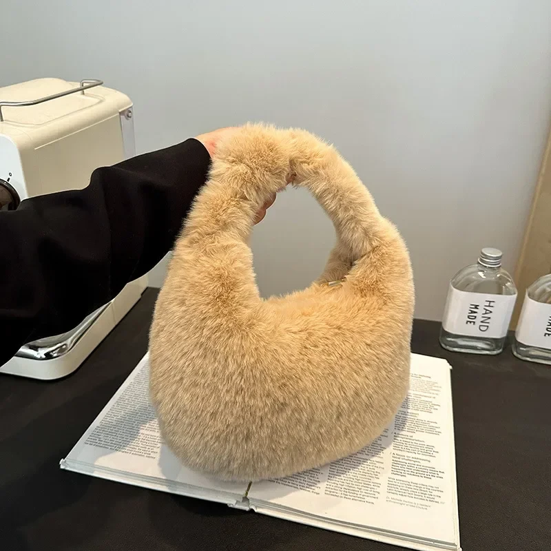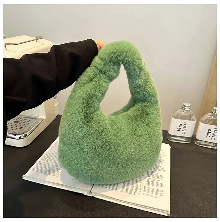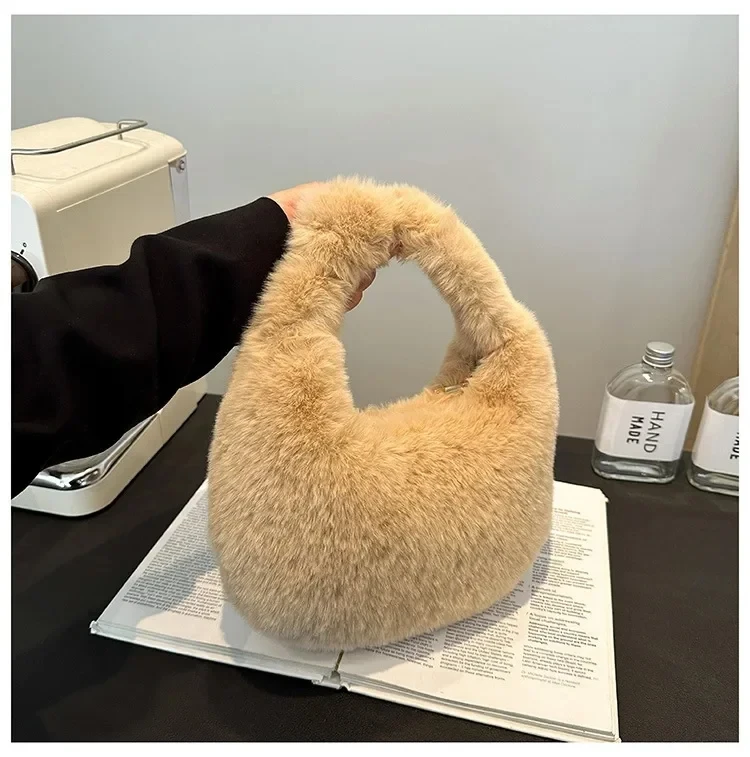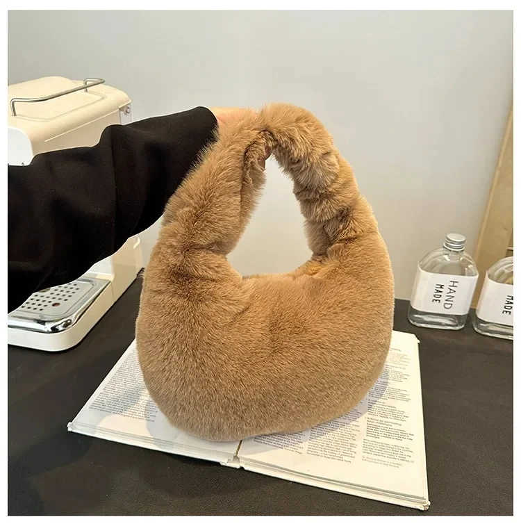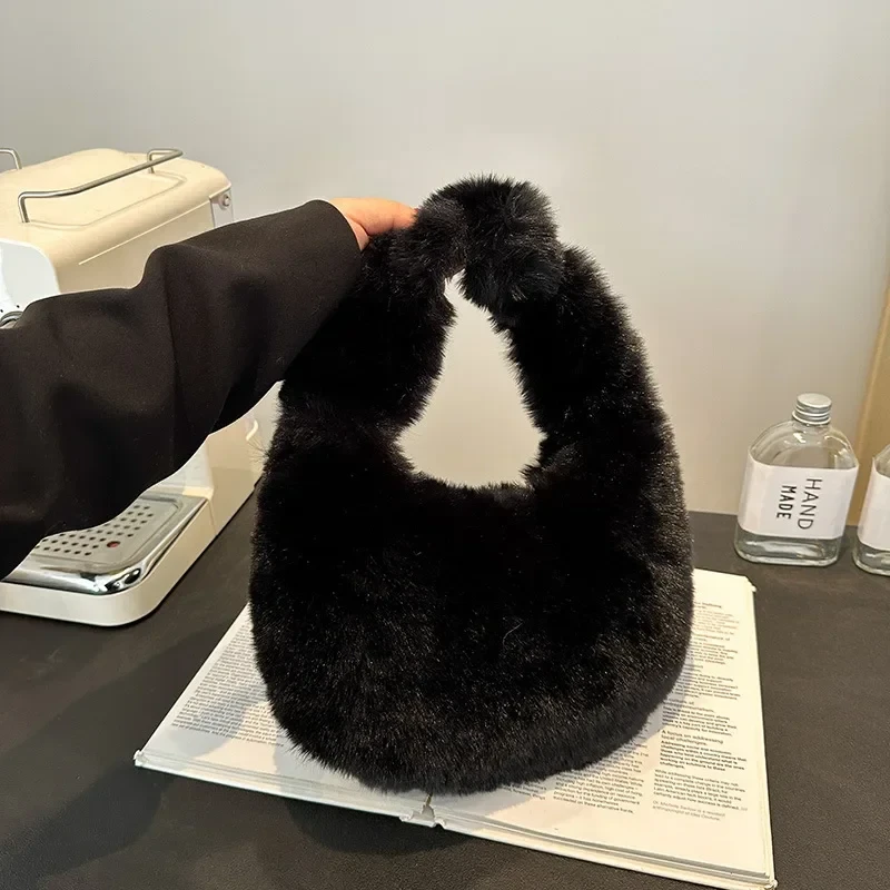 Large Capacity Fluffy Dumpling Bag Women's Crossbody Bag Commuter Trendy Handbag Versatile Handle Plush Shoulder Bag