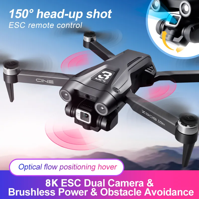 Product configuration parameters: 1. Remote control frequency/channel: 5GHz/6 channels 2. Product material: plastic/metal/electronic components 3. Adjust the camera: 150° electric adjustment [can realize upside down shooting] 4. Product color: black 5. Engine Model: 816 Brushless Motor 6. Remote control mode: left throttle 7. Flight time: about 46mins 8. Phone Clip Size: 5.5 inch 9. Remote control battery: AAA battery*3 10. Body battery: 3.7V 2000mAh 11. Remote control distance (no interference): 5000m 12. Charging method: USB 13. Charging time: about 60 minutes 14. Packing method: storage bag + color box 15. Body size: 25*25*5cm 16. Folding size: 13*9*5cm 17. Packing size: 23.2*8.1*18.6cm 18. Image transmission signal: the drone has its own WiFi signal 19. Image return distance (no interference): 5000m 20. Drone weight (battery included): 138g 21. Package weight (color box + storage bag): 460g Remote control function: One-key take-off/one-key landing/ascent/descent/left/right direction/360° roll/headless mode/speed and slow speed/one-key reset/fine direction-adjustment/lens adjustment angle Aerial photography application function: One-key take-off/one-key landing/ascent/descent/left/right direction/360° roll/headless mode/speed/slow speed/photo/video/dual camera switch/automatic photo face recognition/gravity sensor/ runway flight/ Camera settings: Video Resolution: Standalone 8K 7680*4320 Photo resolution: 8K single shot 7680*4320 Video resolution: 8K dual front camera 7680*4320, bottom camera 7680*4320 Photo resolution: 8K dual front camera 7680*4320, bottom camera 7680*4320 Package Included: 1 x Z908 Drone 1 x Remote Control 1 x 3.7V 2000MAH Battery 1 x USB Charging Cable 2 x Spare Blade 1 x Screwdriver 1 x Manual |