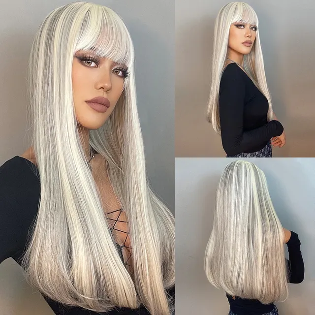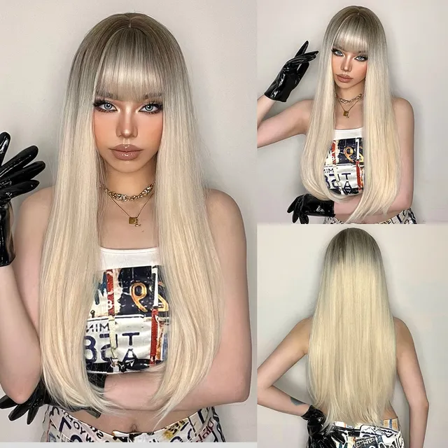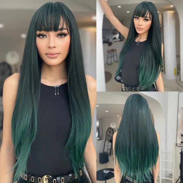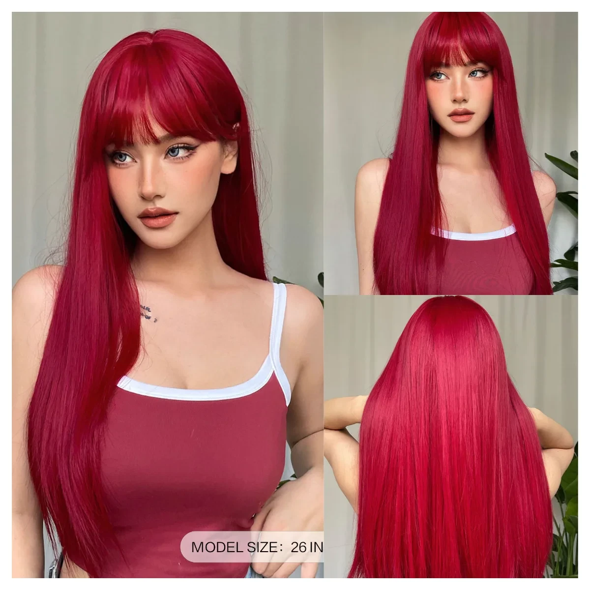 Dark Red Synthetic Wig Long Straight Bangs Natural Hair Cosplay Party Halloween