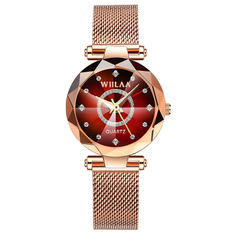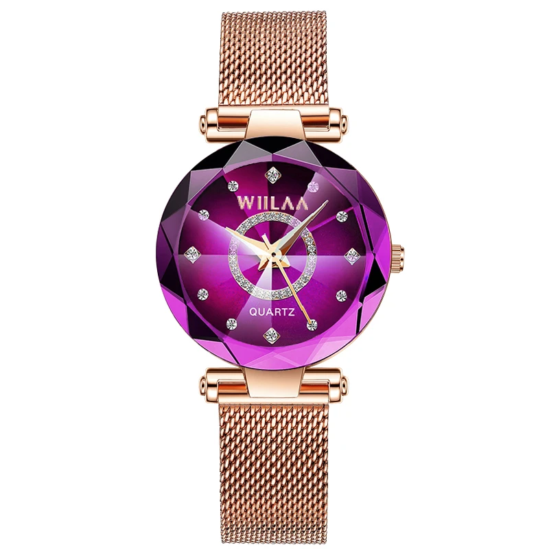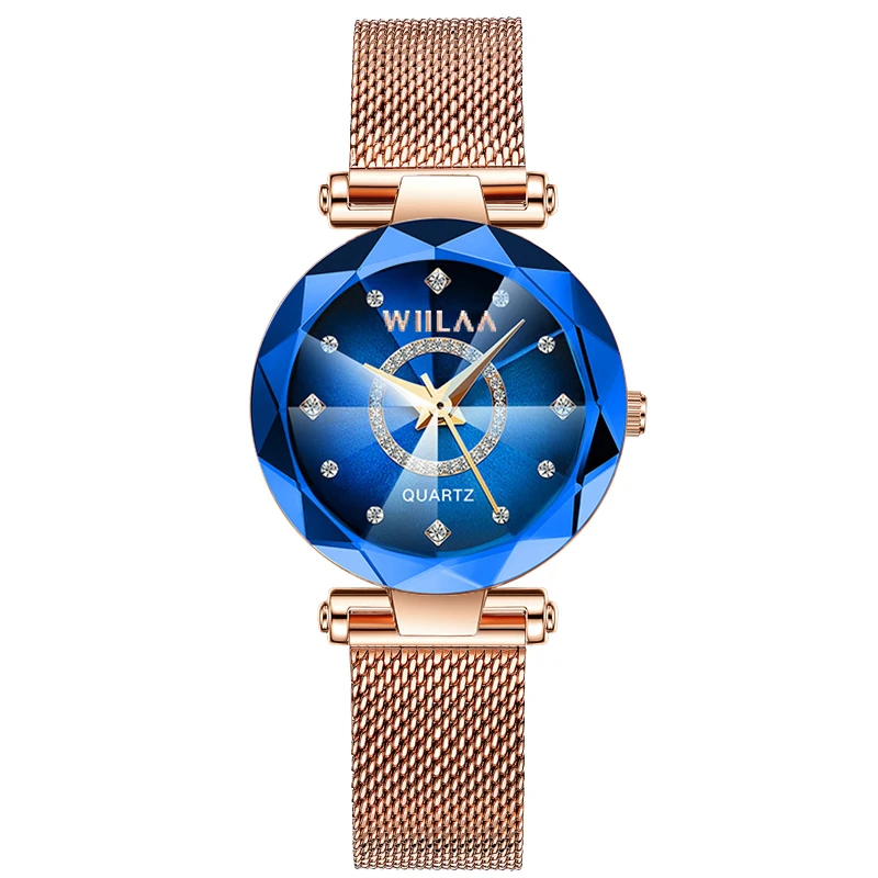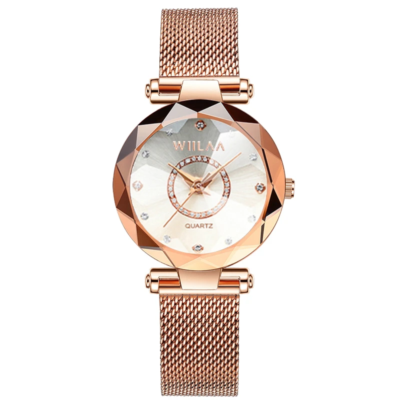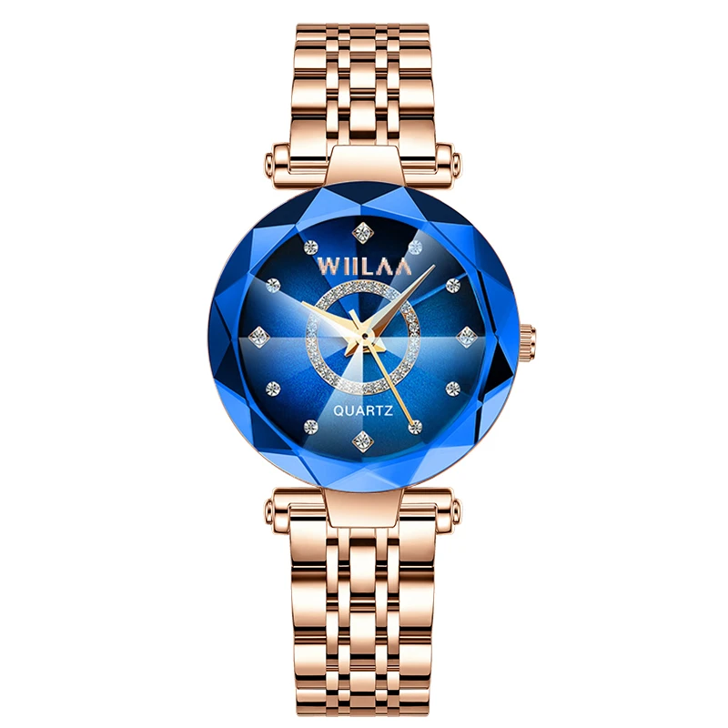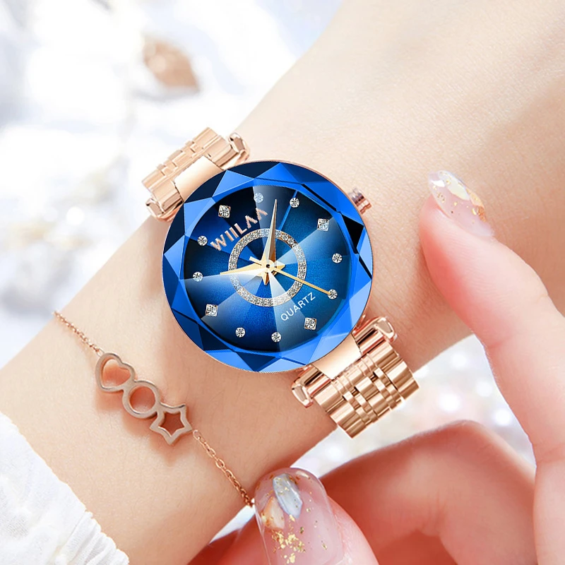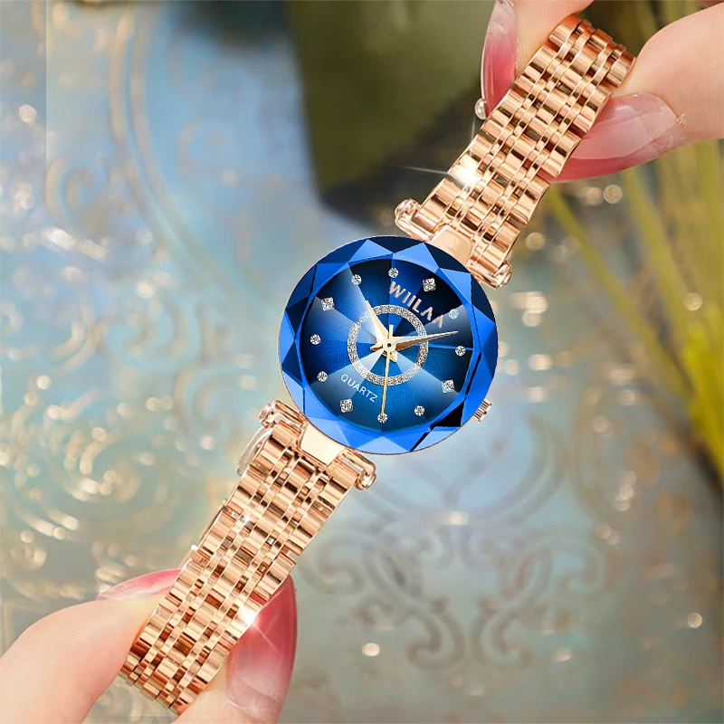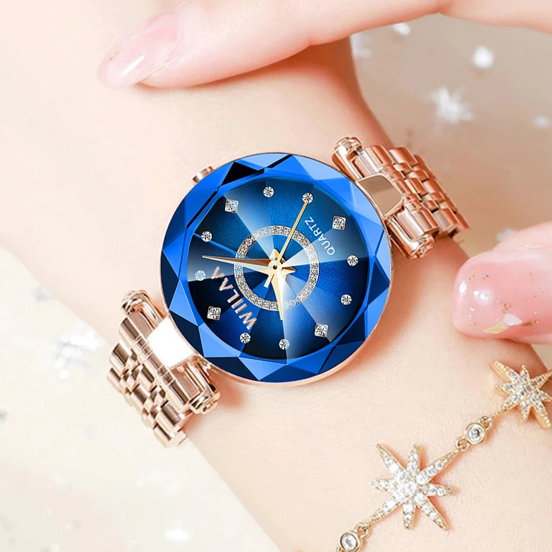 WIILAA Ocean Star Women Crystal Watch 2025 Top Brand Luxury Rose Gold Women Bracelet Wrist Watch For Ladies Relogio Feminino