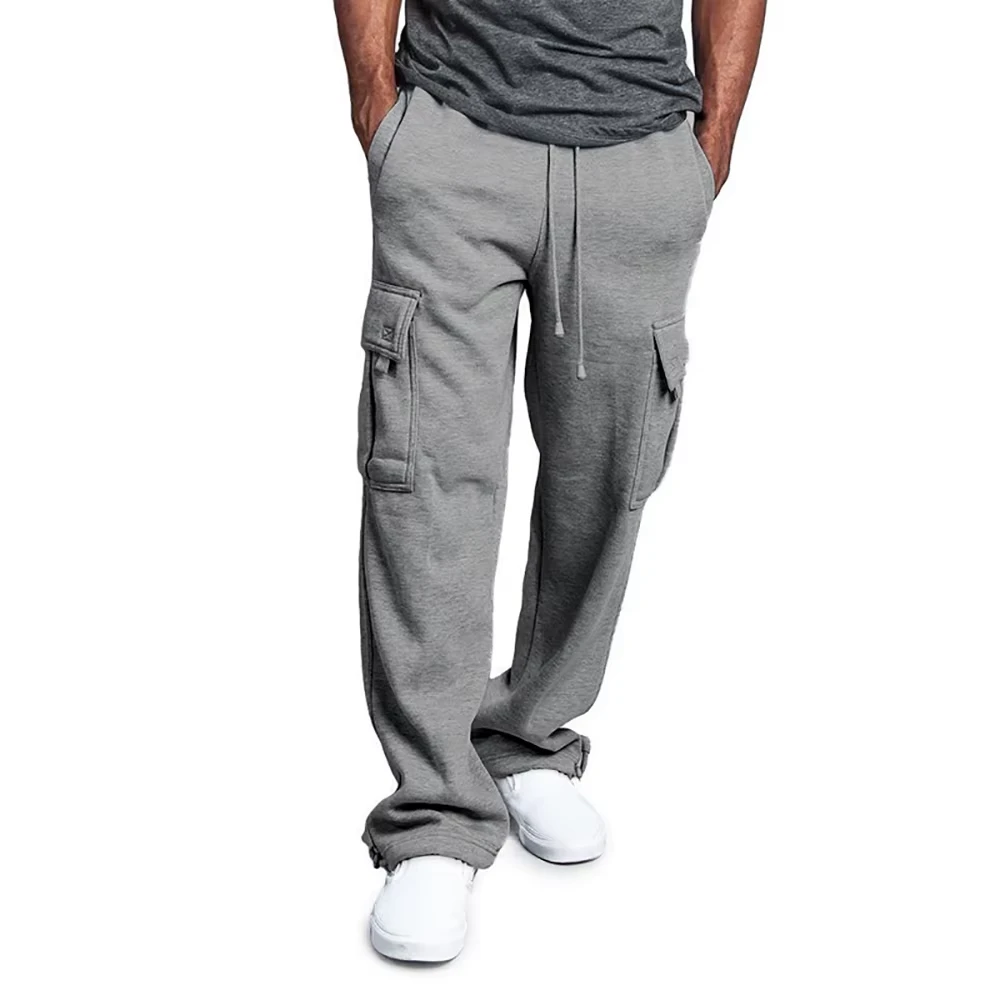 Men's Sweatpants, Straight Fit Joggers for Sports and Streetwear, Loose Oversized Long Pants with Drawstring, Men's Multi-Pocket Trousers