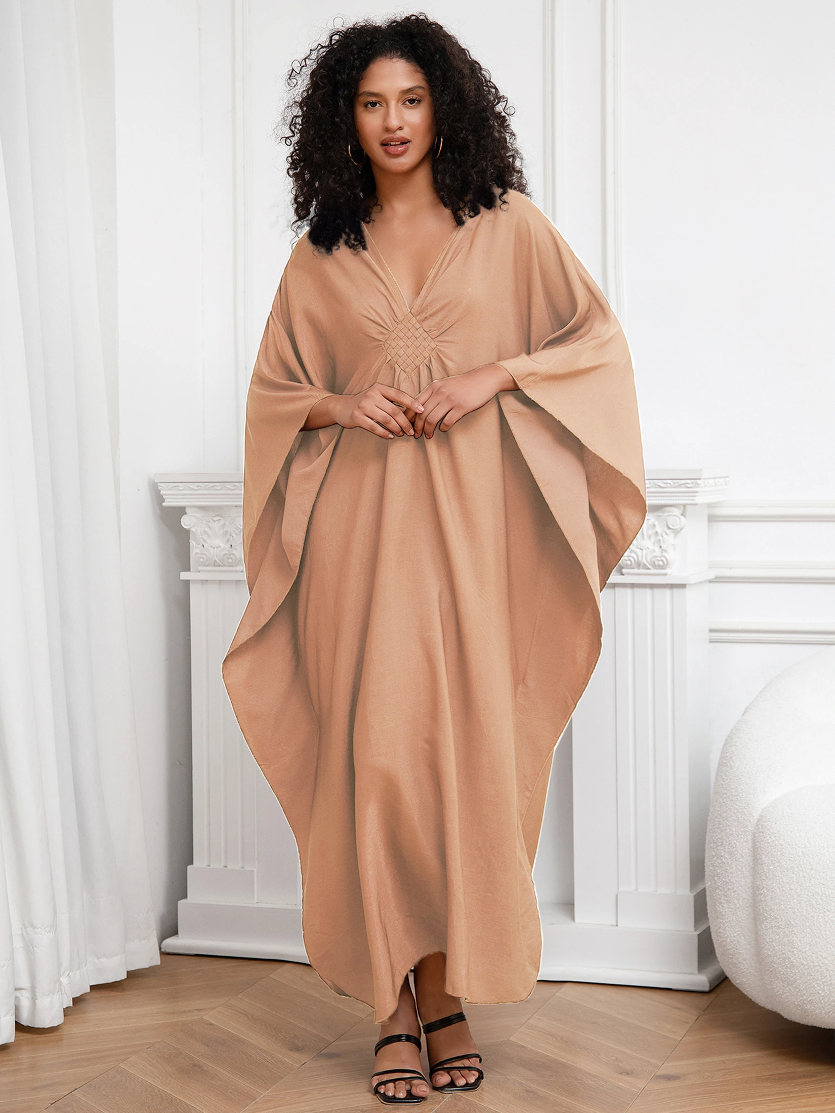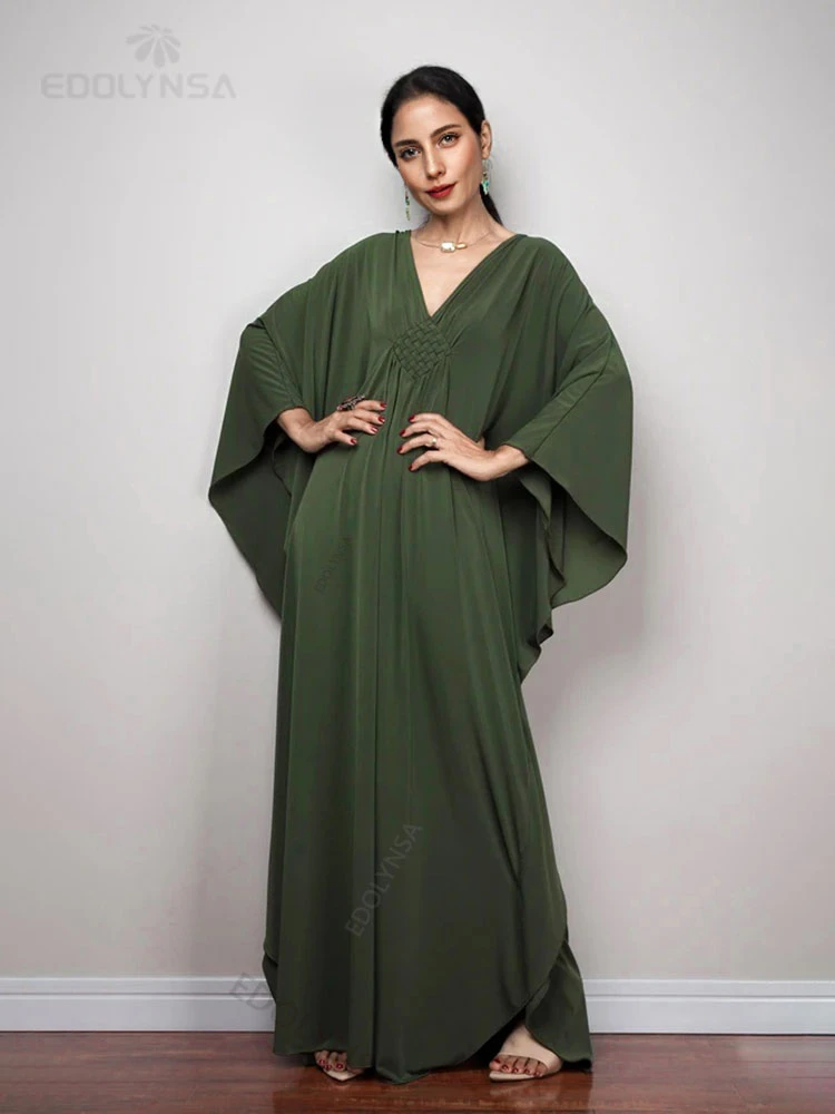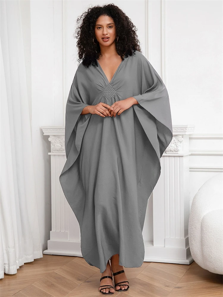 2025 Multicolor V-neck Batwing Sleeve Plus Size Loose Maxi Dress For Women Summer Beach Wear Kaftan Long Bathing Dresses Q1306 ![]()