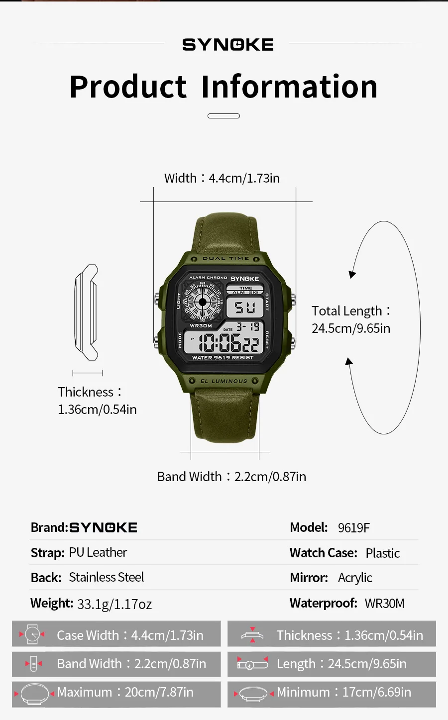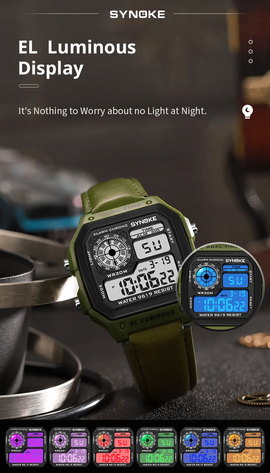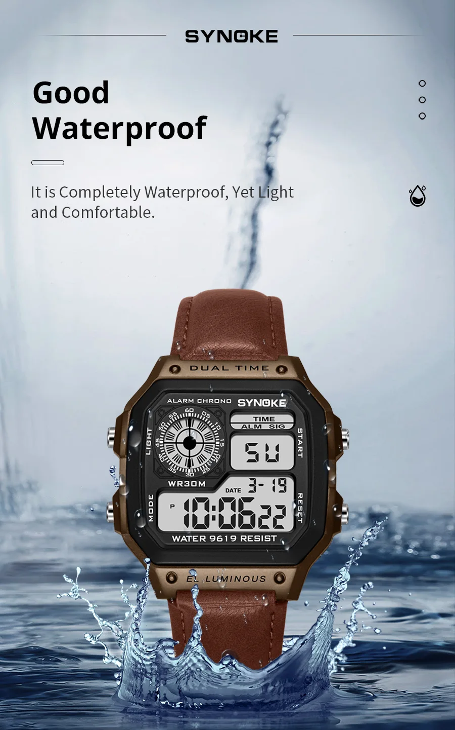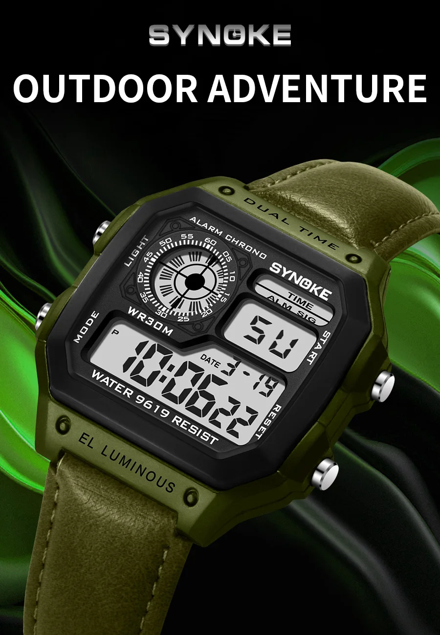 Multifunctional Waterproof Luminous LED Digital Watch PU Leather For Men Retro Fashion Belt Watch Men Outdoor Sports